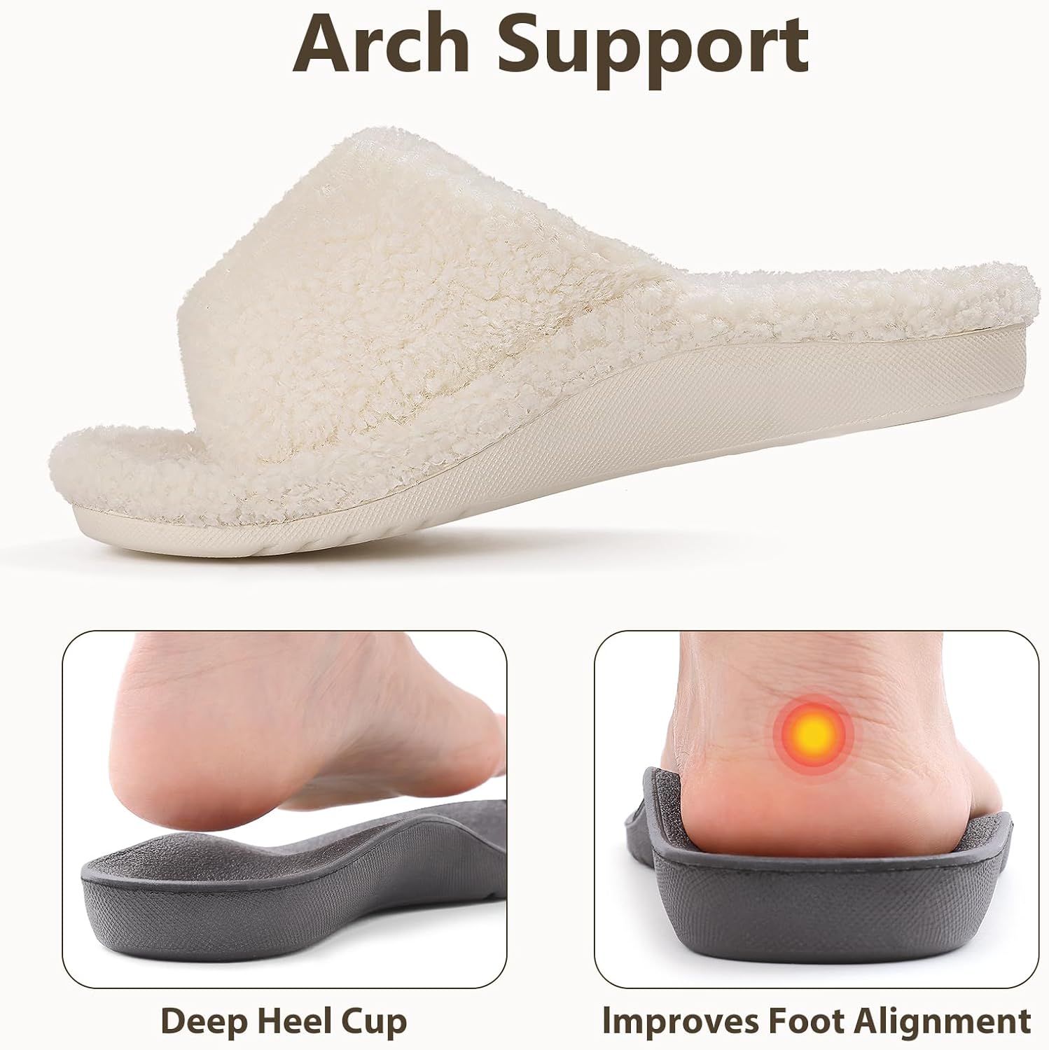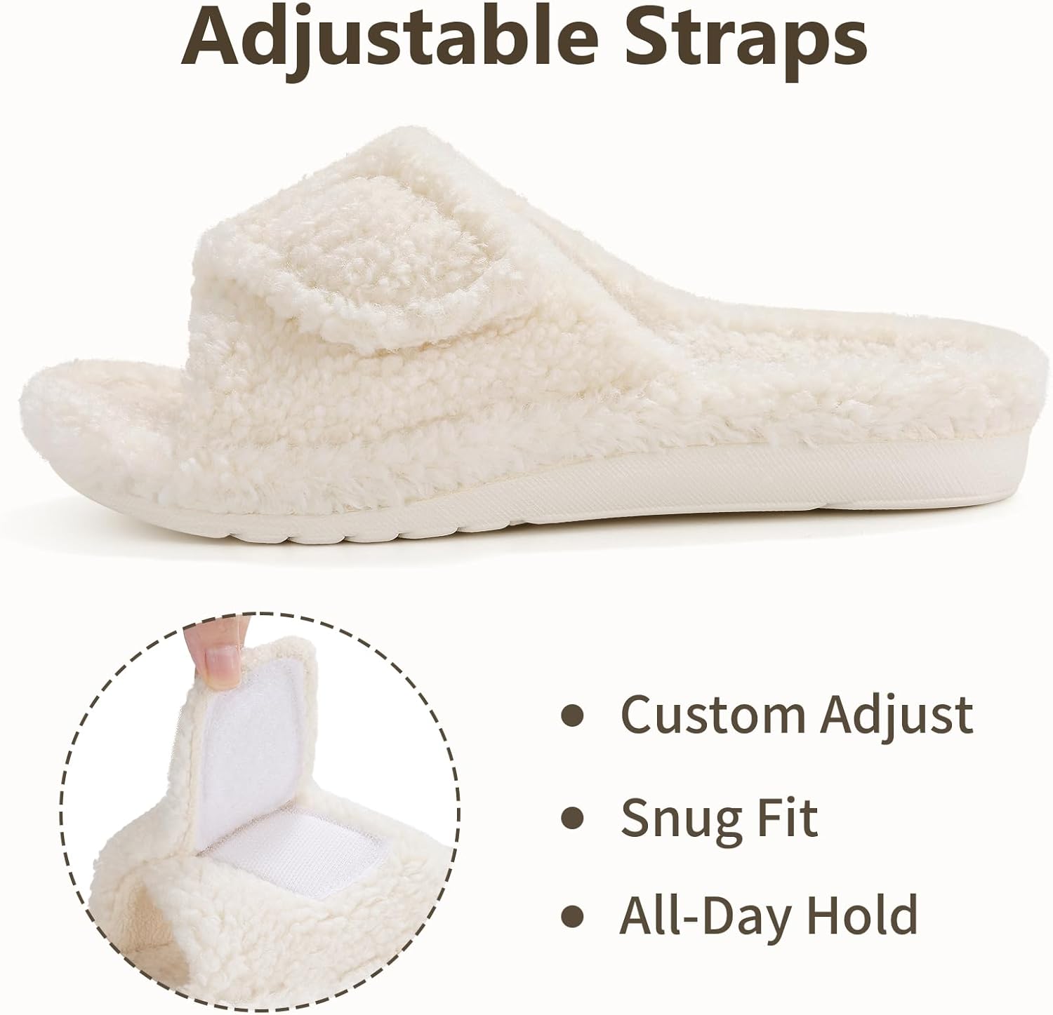 Customers find these slippers comfortable and well-made, with great arch support that helps with conditions like Plantar Fasciitis and swollen feet. They are soft and cushioned just enough, with an adjustable strap that adapts to different foot widths. Customers appreciate the perfect fit and consider them worth the price.
