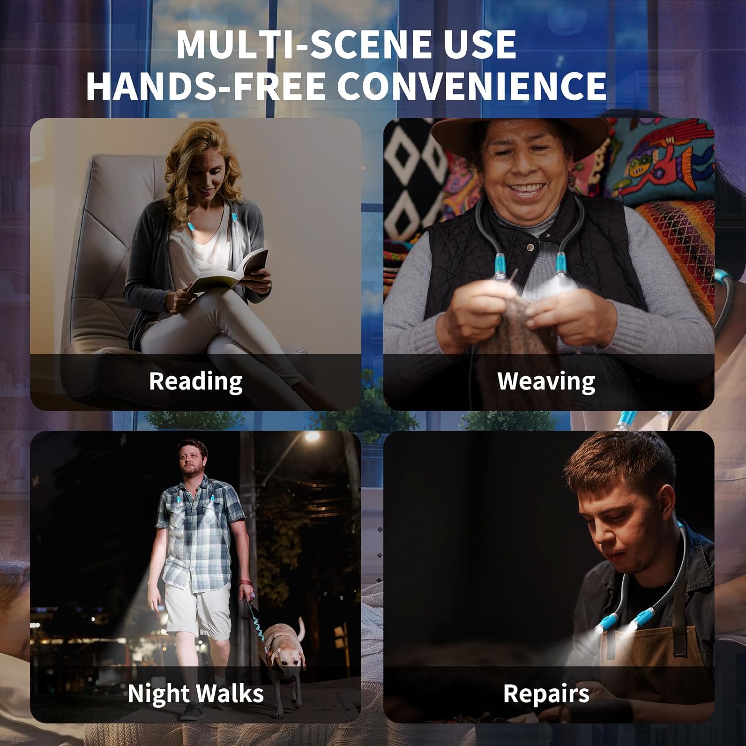 [Easy to Use] Simply hang this neck light around your neck and enjoy hands-free reading anywhere—whether in a bunk bed, in the car, or outdoors. Its sweat-proof design makes it perfect for activities beyond reading, such as knitting, walking, jogging, or even BBQs. This neck light for reading is also great for neck lights for crafts, ensuring precise lighting for detailed tasks