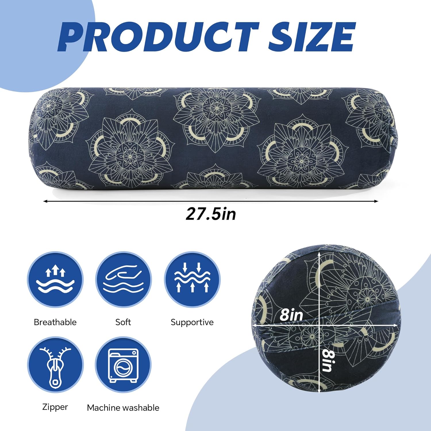 【Perfect Size】: Cylindrical Yoga Bolster Pillow measures 27.5″” x 8″” x 8″”, round shape better supports open chest, exercise balance and flexibility, suitable for most yoga poses