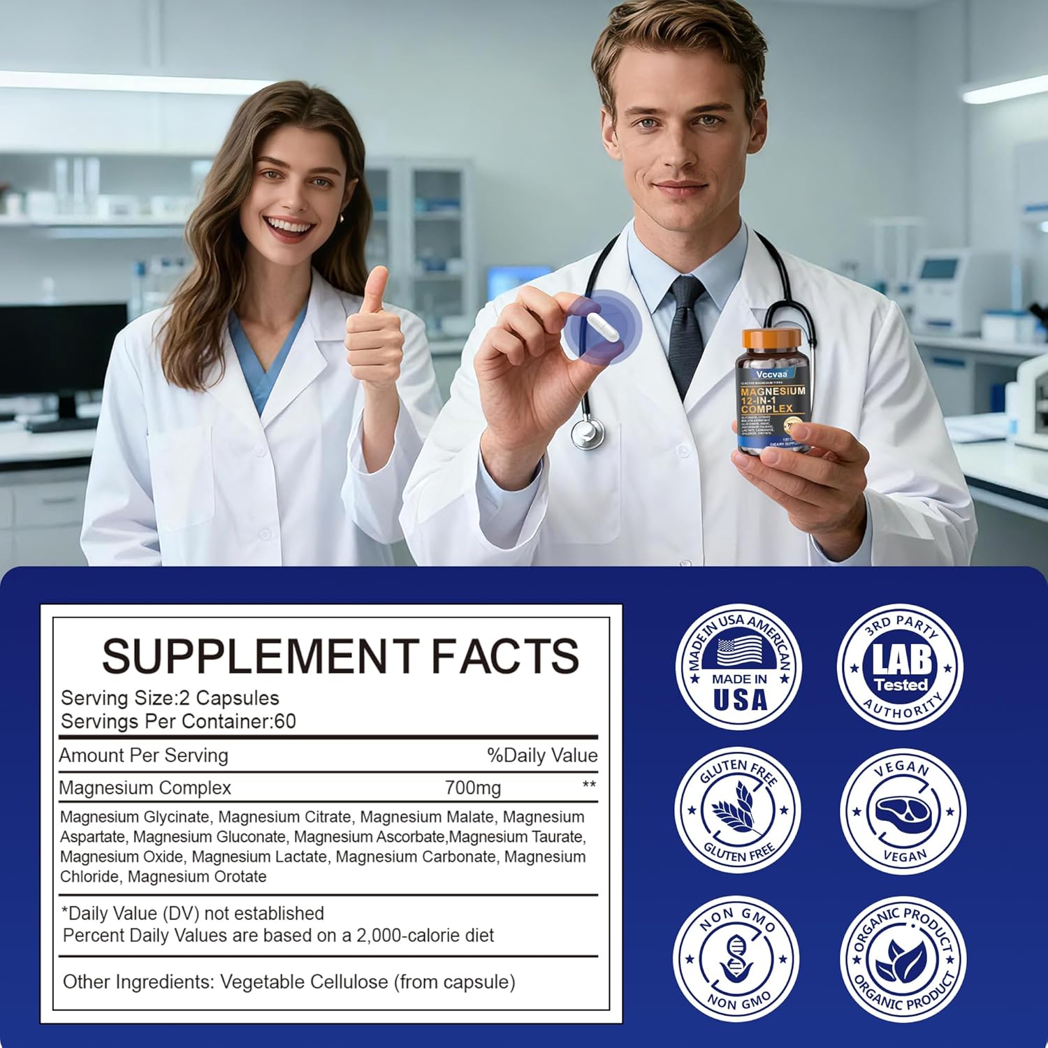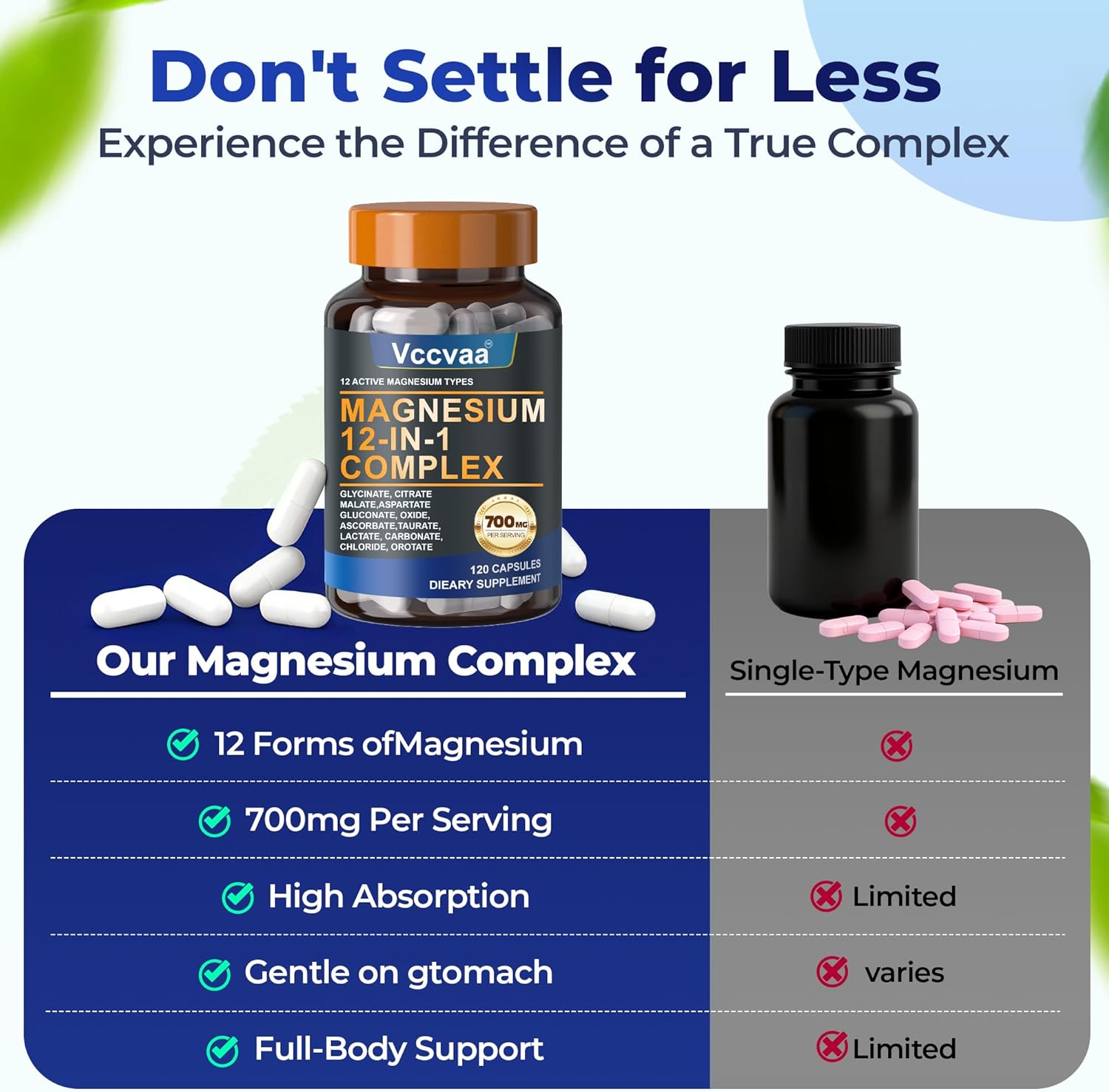 Clean, Vegan-Friendly Formula – Vccvaa Magnesium Complex is vegan, non-GMO, gluten-free, soy-free, and made without stearates, preservatives, or artificial ingredients. Gentle on digestion and suitable for daily use.