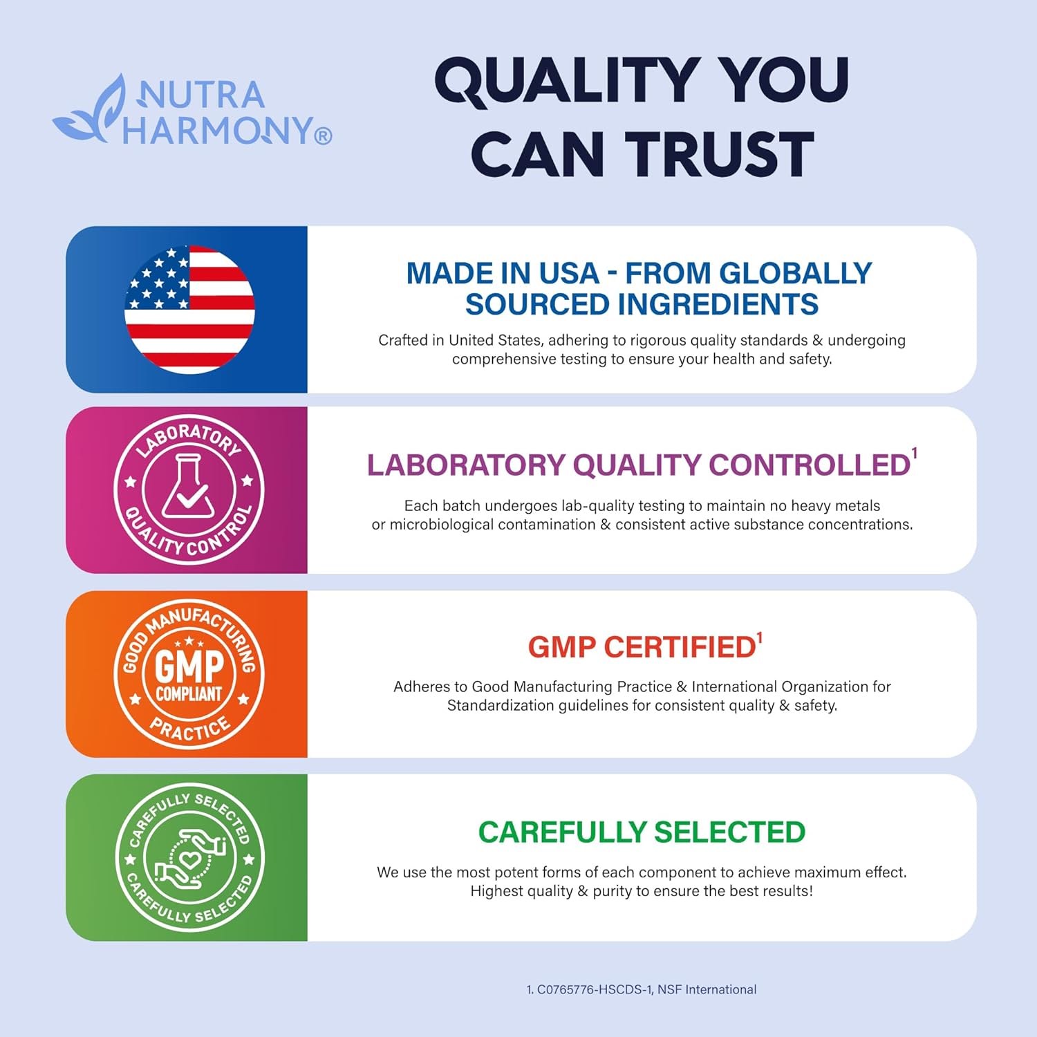 PROVEN EFFECTIVENESS & MADE IN USA — rooted in scientific research and manufactured in a GMP-certified facility in the USA, this supplement upholds the highest standards of purity, safety, and consistency. Every batch is rigorously tested to ensure reliable results you can trust.