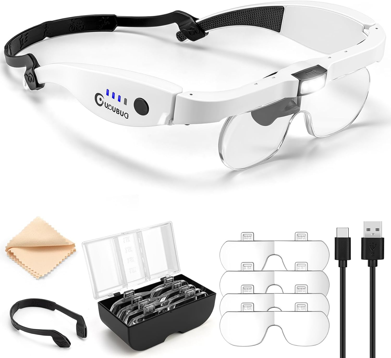 Magnifying glasses with light for close work: cross stitch, beading, diamond painting, lash tech, modeling, repairing, sewing, soldering, jewelry making, other hobbies/crafts.