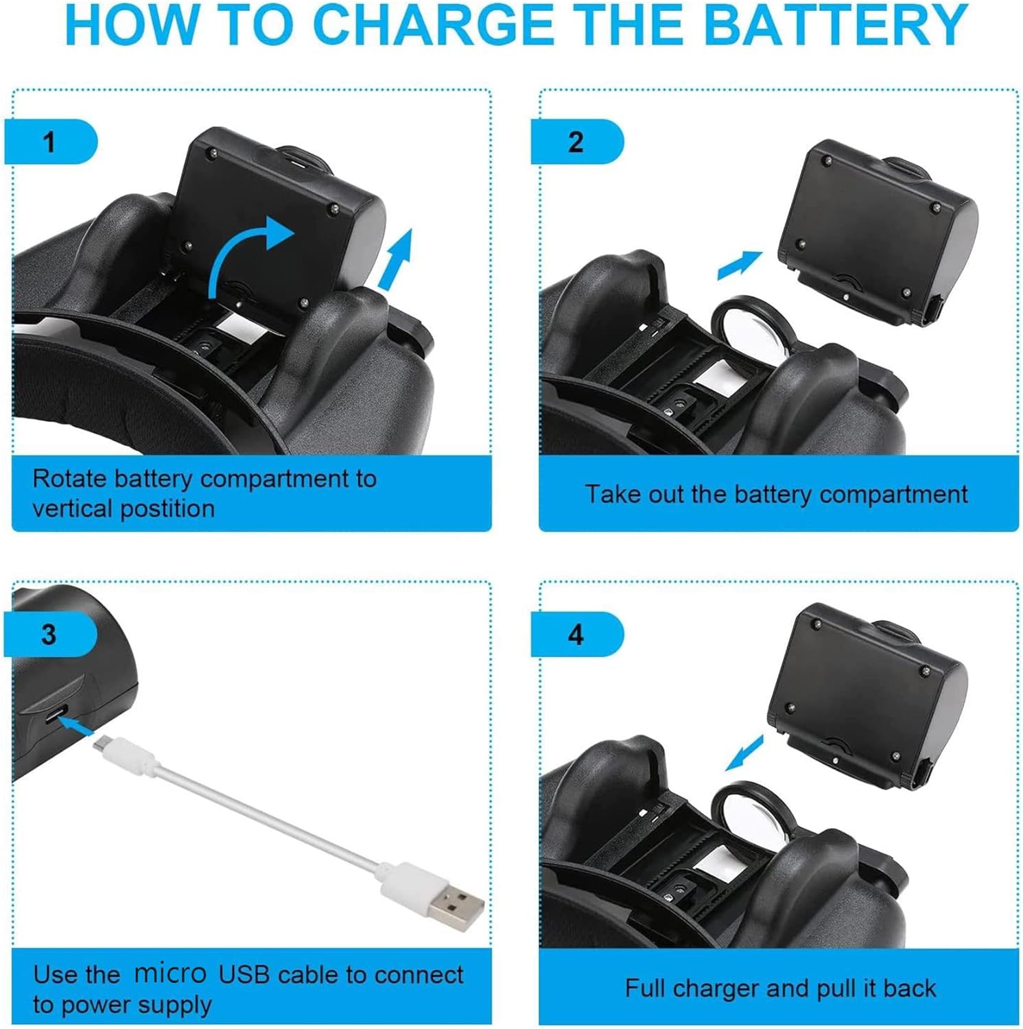 RECHARGEABLE & ADJUSTABLE LED LIGHT: Our headband magnifier with 3 led lights has the function of detachable and adjusting the direction of illumination. When using, you can adjust the illumination direction of led for more precise illuminating angle to meet your need. Also, you can remove the battery to charge. Magnifying glass with light takes 1.5 hours to fully charge through USB cable. Fully-charged battery can make LED light last continuously for 4-8 hours.