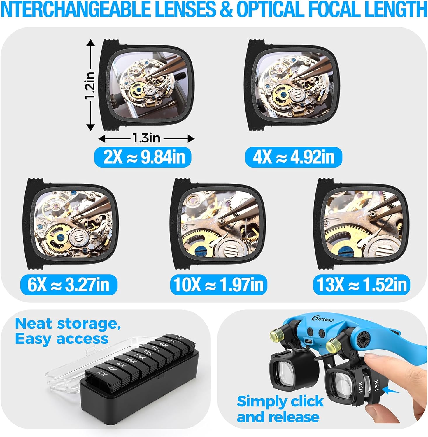 Compact Design & Multifunction: Non-slip soft and adjustable padding to prevent glasses from falling off and reduce fatigue for all-day wear. A compact carry bag is the good life helper, All accessories including the magnifier and lenses plastic case can be stored neatly. and then you can take it to anywhere you wanna go. It is the Ideal headband magnifier trusted by jewelers, watchmakers, scale modeler, hobbyists.
