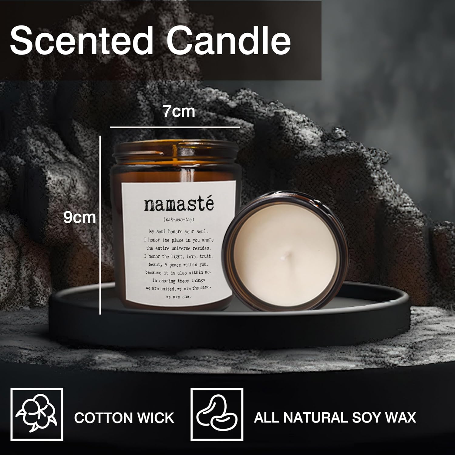 Scented Candle: Enhance your surroundings with the delightful fragrance of our scented soy wax candles. Immerse yourself in a calming experience that promotes stress relief, emotional balance, and creates a harmonious living space.
