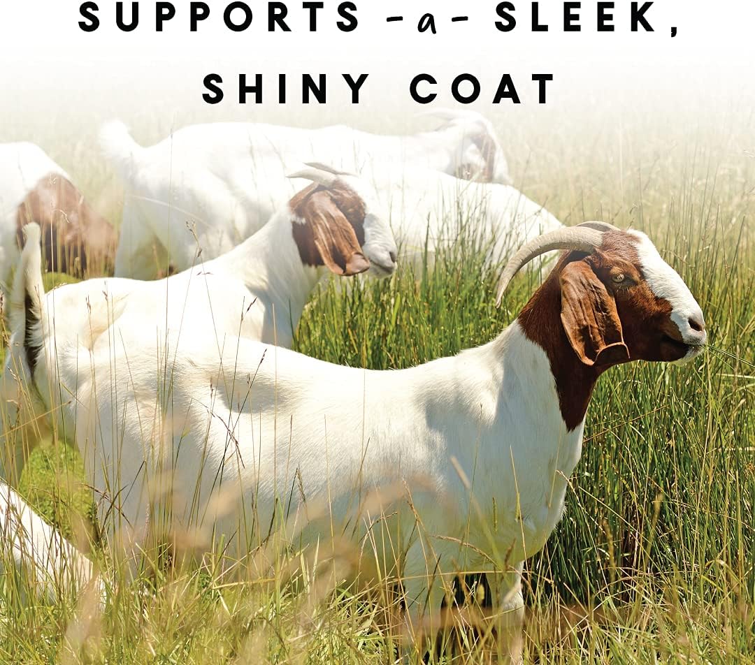 SKIN AND COAT SUPPLEMENT FOR ALL BREEDS OF GOATS: Specially formulated to support healthy skin, a glossy coat, and overall well-being in all goat breeds