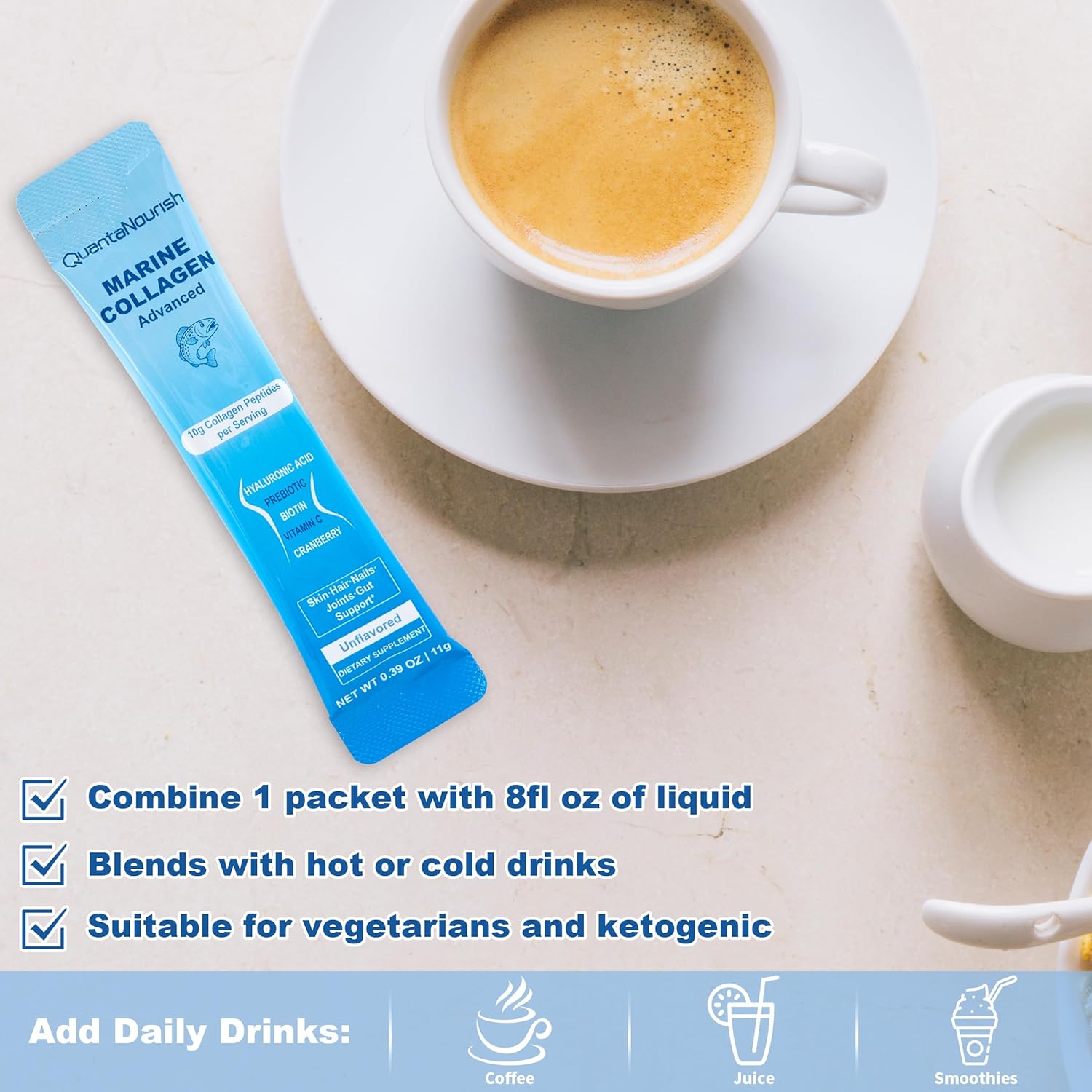 Travel-Ready Stick Packs for Anytime Use: Includes 30 convenient single-serve stick packs—more than the standard 20. Our unflavored marine collagen supplements dissolve instantly in hot or cold drinks like coffee, tea, or smoothies with no scoop or mess. Perfect for daily routines at home, the gym, or on the go.