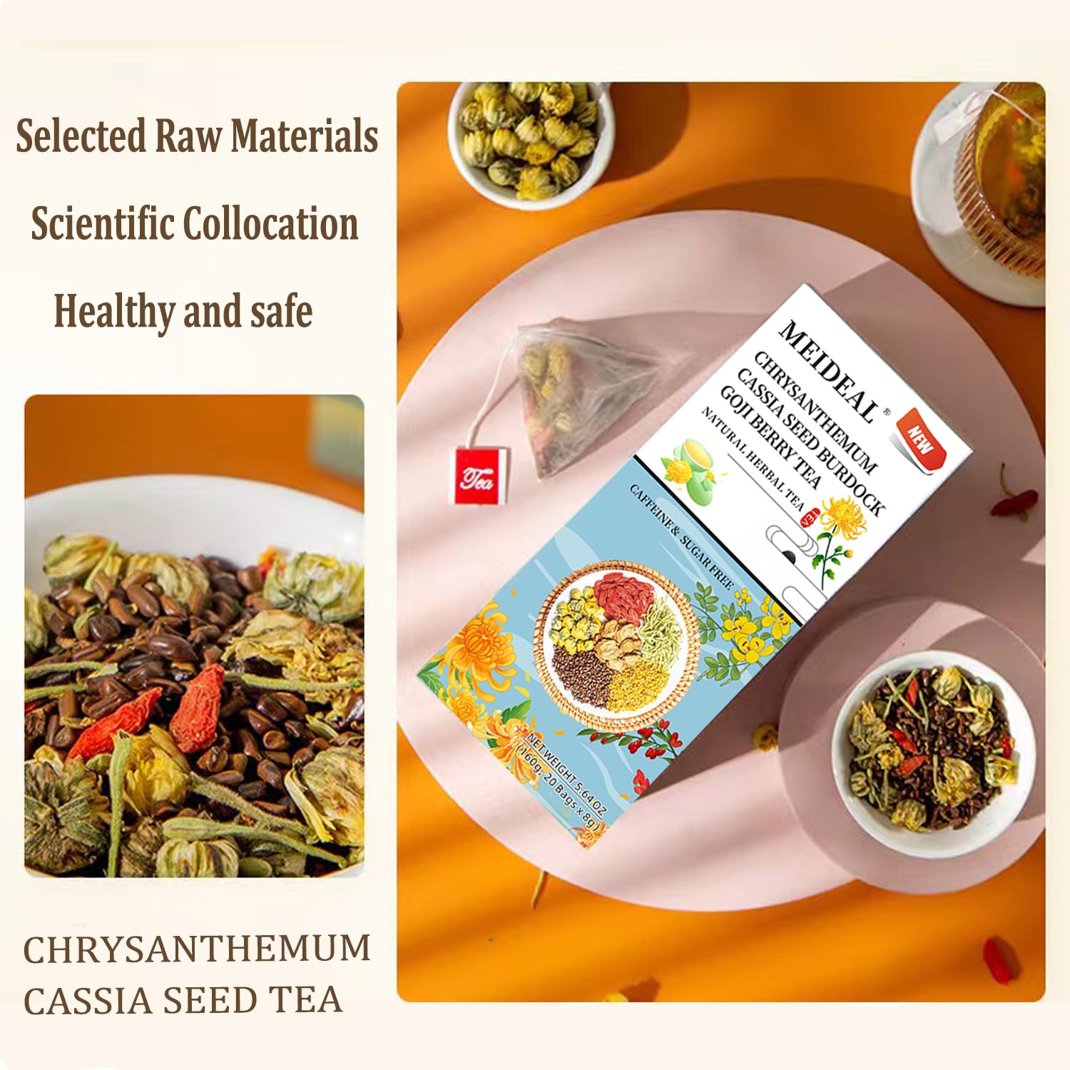 【Expert Formulation】Our tea blends chrysanthemum, cassia seed, burdock root, goji berries, osmanthus, and honeysuckle, following traditional Chinese practices and modern scientific principles for optimal flavor and health benefits.