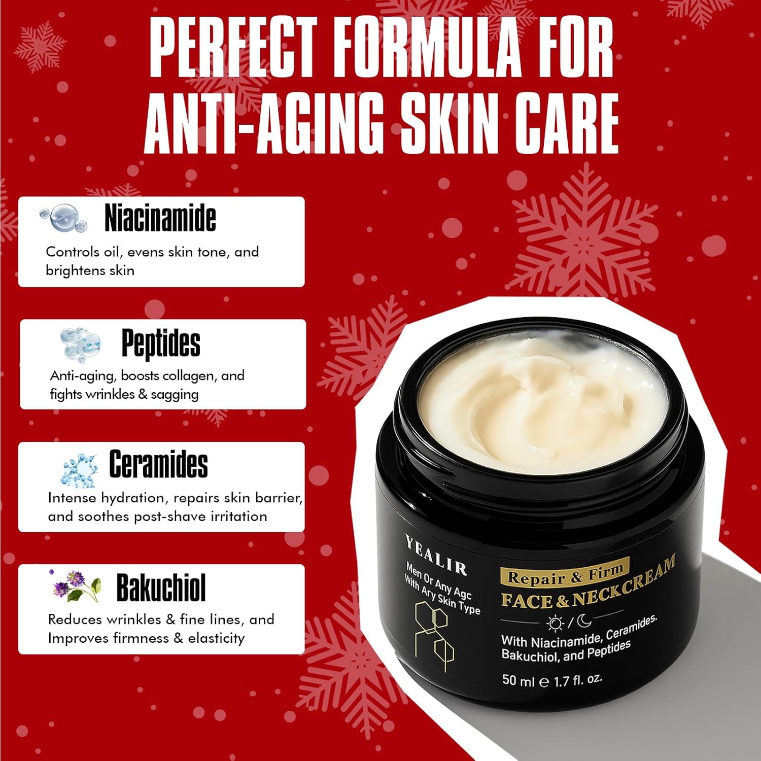 Powerful Ingredients: Niacinamide reduces pores and evens skin tone, while ceramides boost moisture. Peptides support collagen production, smoothing face and neck lines. Our plant-based retinol alternative in this mens face cream delivers anti-aging benefits without irritation. Skin feels firmer and looks smoother with regular use.