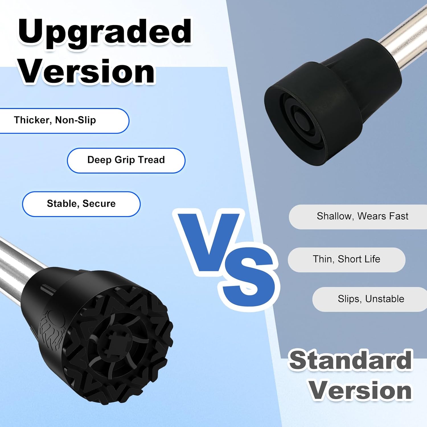 Built from thick, durable rubber with metal support, these tips are long-lasting and designed to withstand extended use. For best performance, we recommend checking them regularly and replacing if worn.