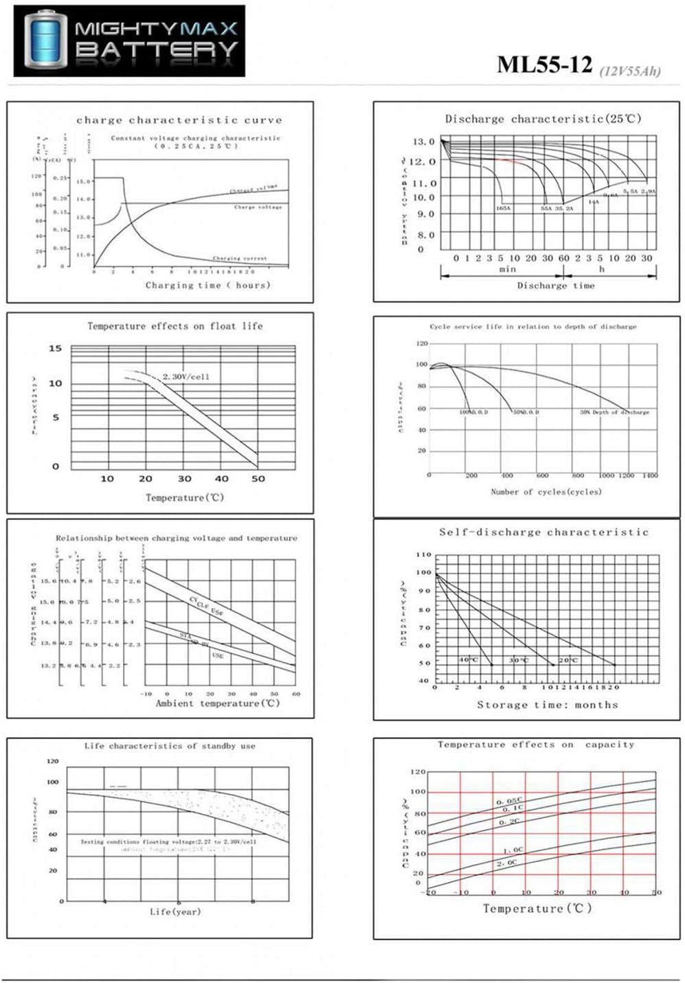 ML55-12 SLA is a 12V 55AH Sealed Lead Acid (SLA) rechargeable maintenance free battery, Pack of 2 – UL Certified