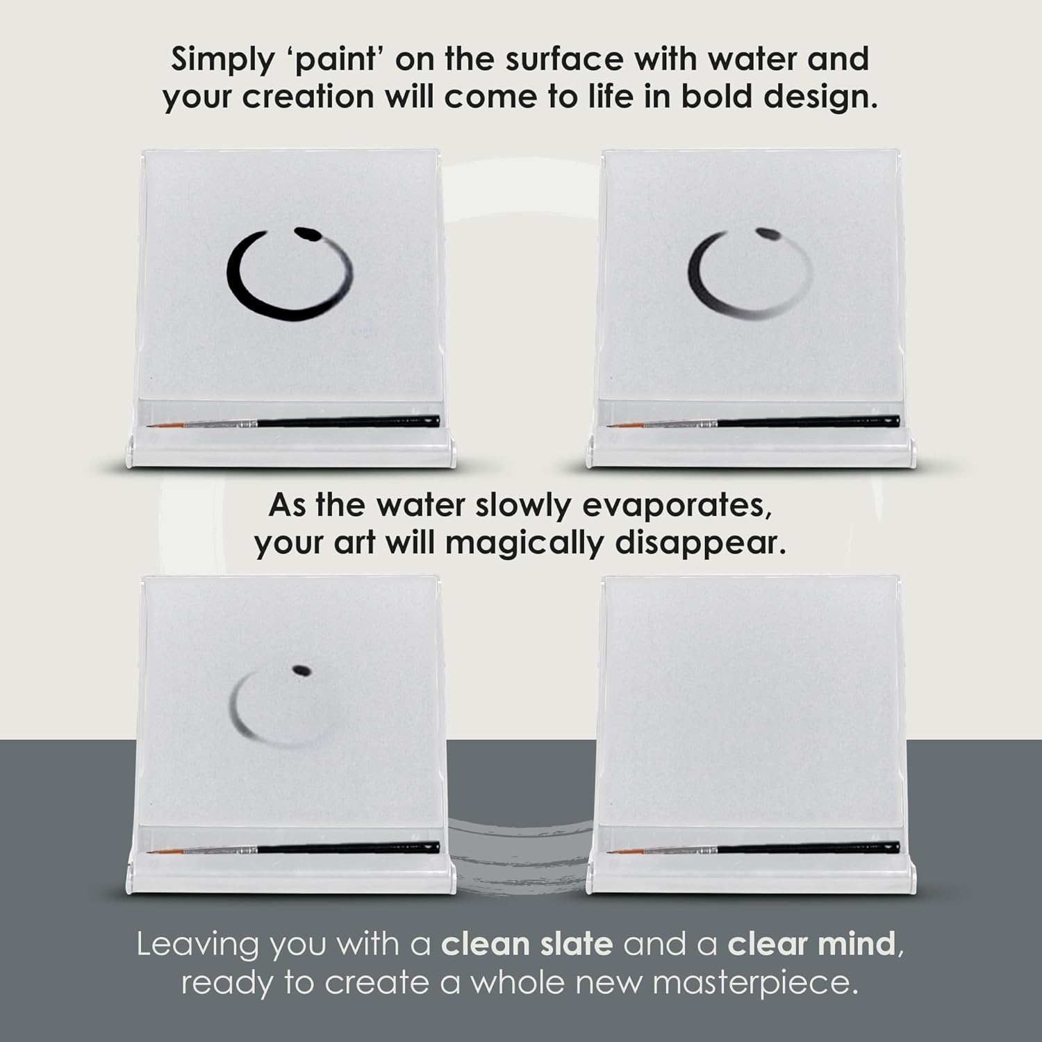 LET YOUR STRESS FADE AWAY: There is no need to worry about the finished picture because this Zen-focused board will always reset itself as your art fades away with your stress. Ages from 5 and up can enjoy and learn from the experience of water drawing board without permanence. This buddha board for kids and adults is a one-of-a-kind, unique art gift for artists that keep on giving.