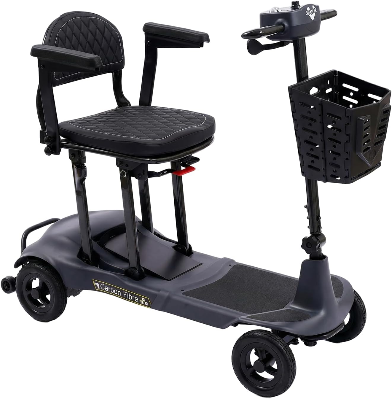 【Lightweight, Durable Aluminum Frame & Foldable Design】SCOOTNGO mobility scooter LITE is made of sturdy yet lightweight aluminum. Model LITE mobility scooter weighs only 37 lbs without batteries; two removable batteries add just 8 lbs. Folds in one second to a compact size (L 19.88” × W 12.48” × H 29.17”) and can be pulled for easy transport and storage.