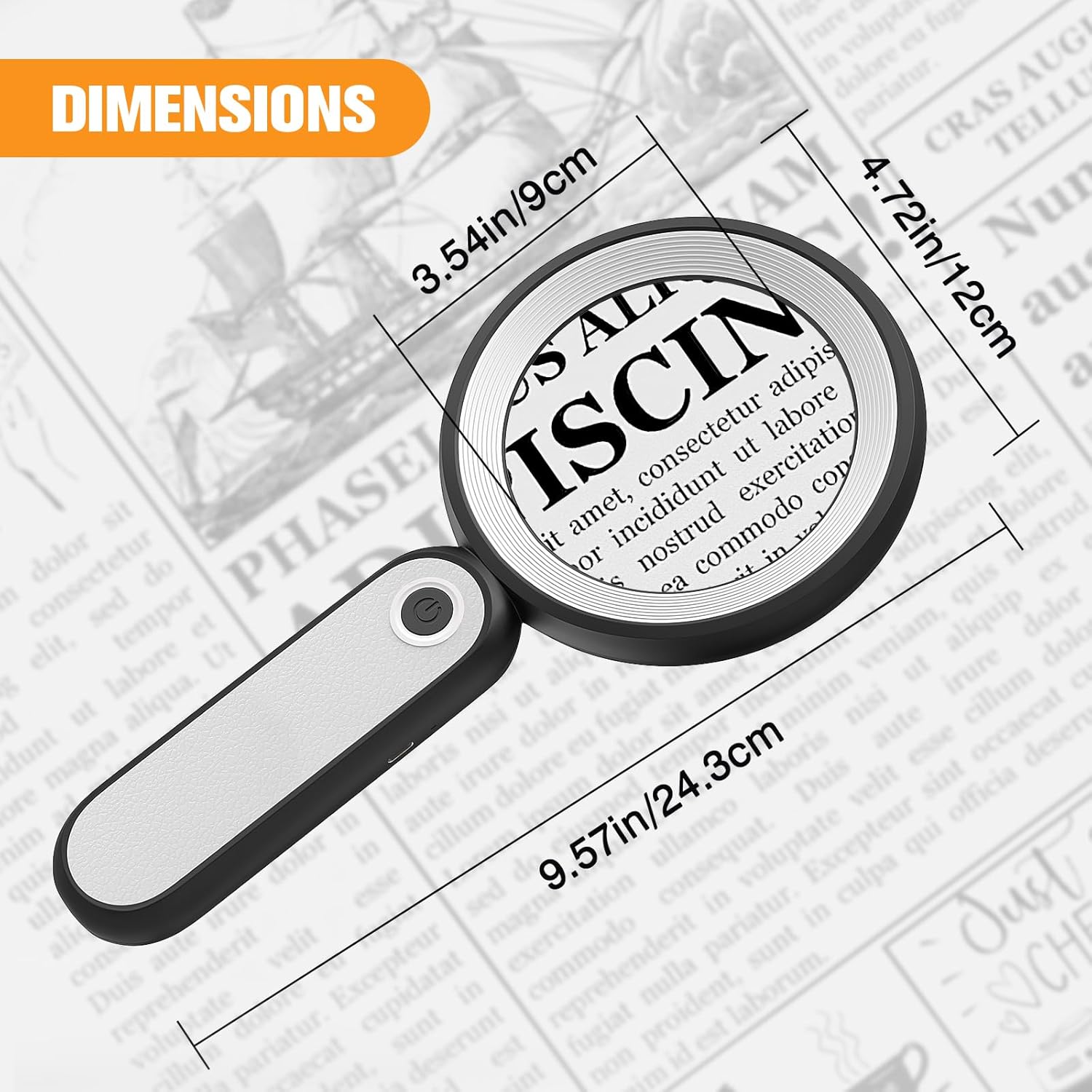 Superior Optical Glass Lens: The lens of this magnifying glass with light is made of high-quality optical glass, clear and distortion-free. With a frame diameter of 120mm, the magnifier has a large viewing area, convenient for reading more small print.
