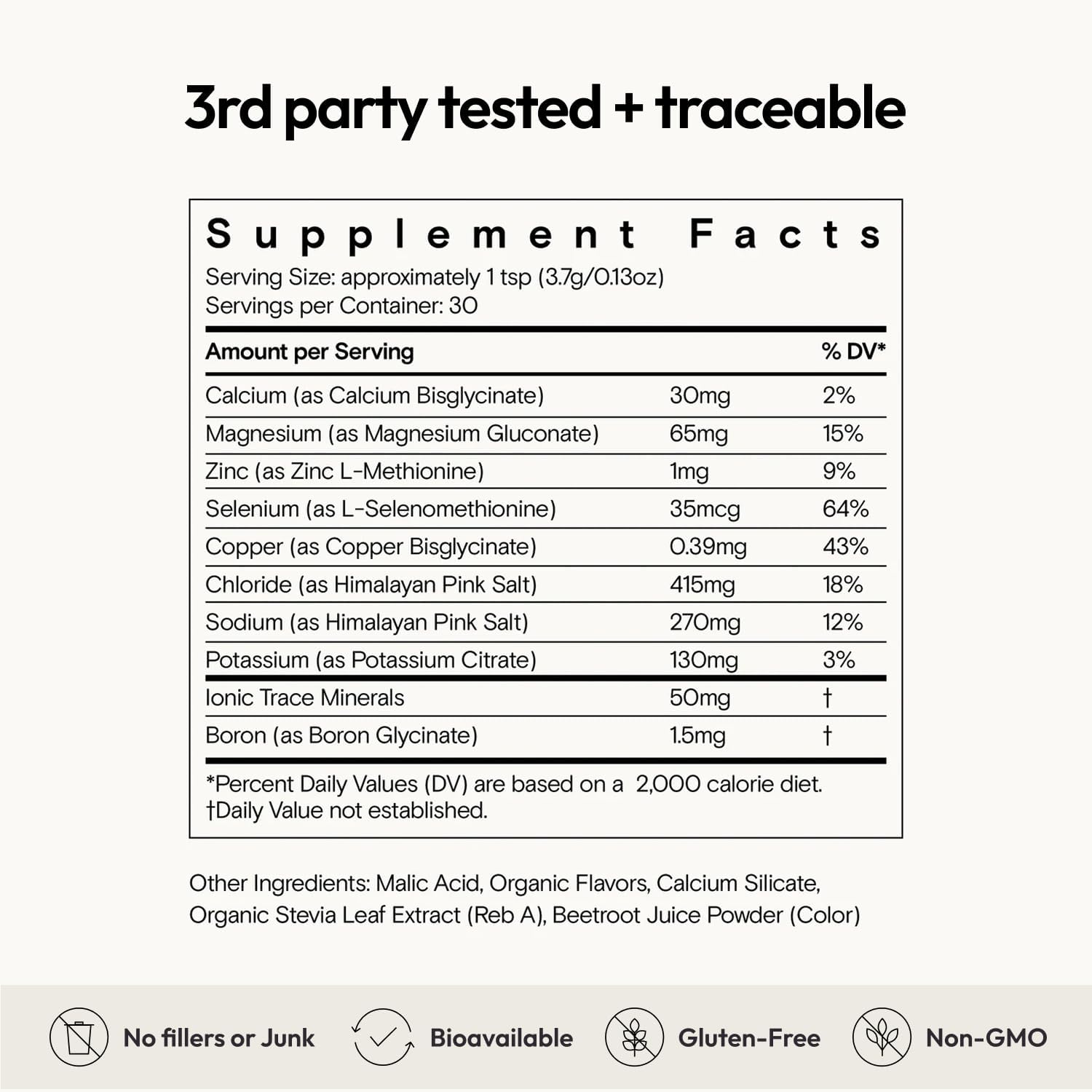 Clean, Microplastic-Free Minerals – Our electrolyte drink mix is made with 100% traceable and sustainably sourced ingredients. Bioactive, bioavailable, vegan, keto, non GMO, gluten free, zero sugar, and no artificial sweeteners.