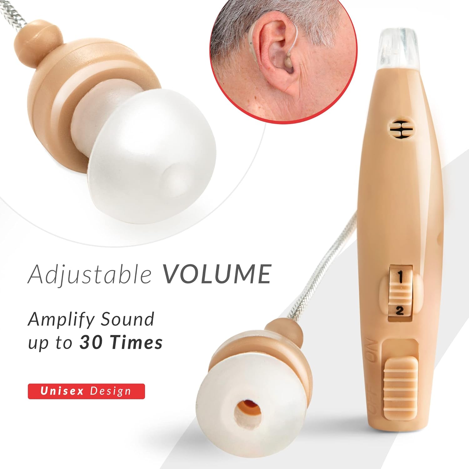 RECHARGEABLE: With MSA 30X amplifiers, you won’t need to worry about replacing batteries. Instead, just charge it! It comes with a fast charging station. Once charged, the MSA ear amplifier will provide up to 8-10 hours of continuous use