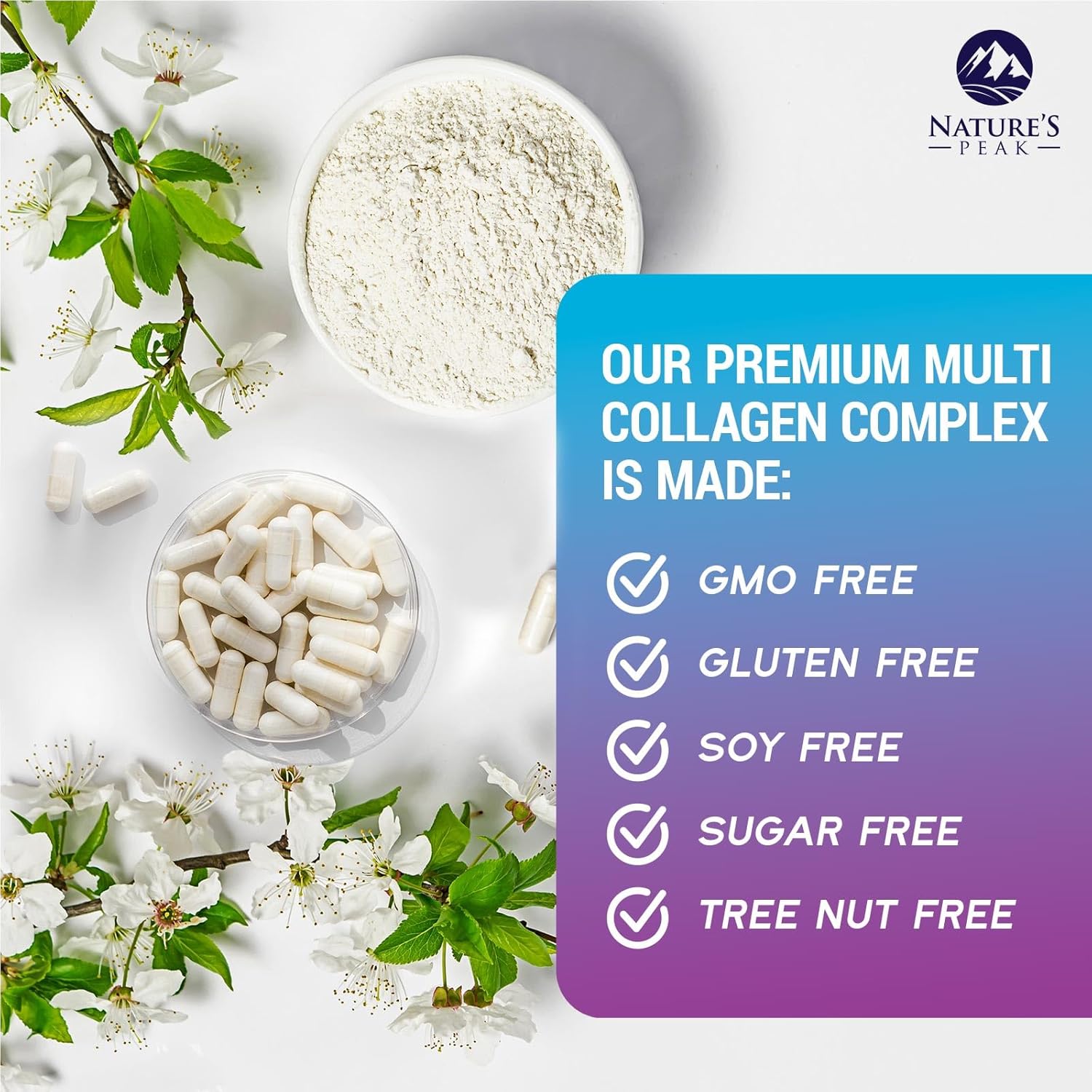 COLLAGEN PEPTIDES FOR WOMEN & MEN: Nature’s Peak types i ii iii v x best hydrolyzed multi collagen pill for skin, face, hair and joint health; Hyaluronic acid supplements pills vitamin tablets free