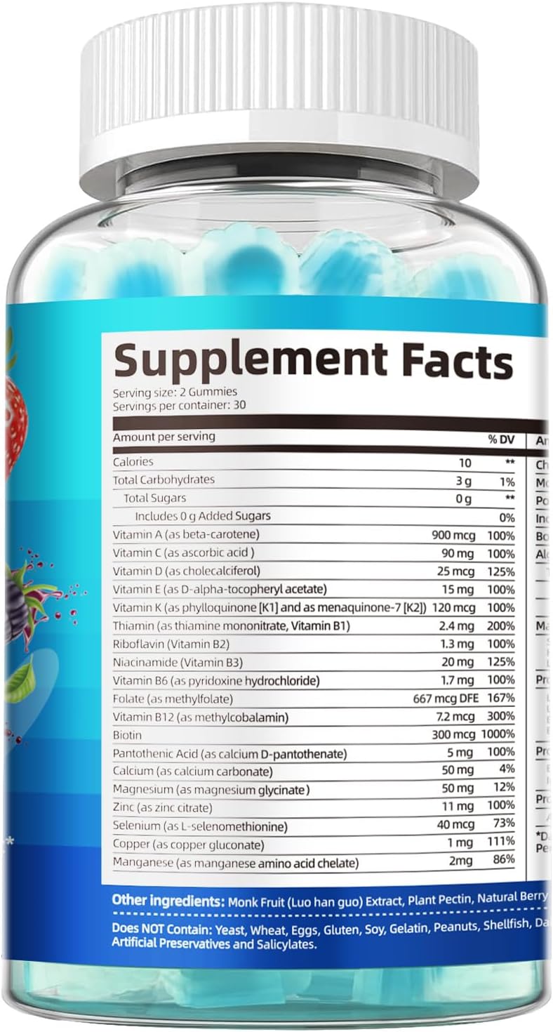 Natural, Sugar-Free Methylated Multivitamin: Mens Multivitamins Gummies. Sweetened naturally with Monk Fruit Extract, these adult multivitamin gumjmies are free from added sugars, artificial sweeteners, colors, and preservatives. Men’s multivitamin, vegan,gluten-free, and free from soy, dairy, and common allergens.