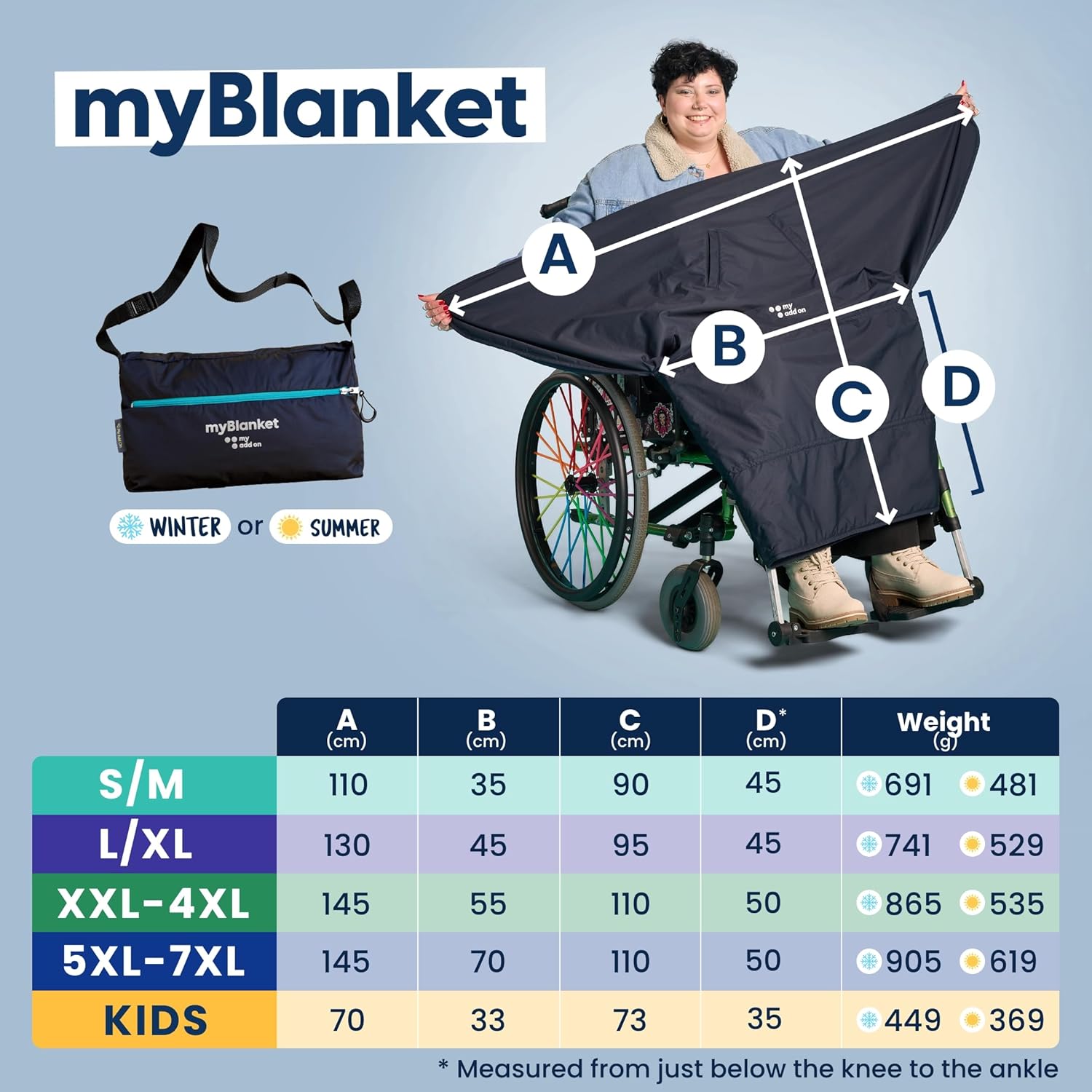 ✅ NO HELP NEEDED: Suitable for manual and electric wheelchairs and mobility scooters. Easily put on myBlanket while remaining seated in your wheelchair! Simply put it on your lap, tuck the flaps under your bottom, and you’re ready to go in an instant.