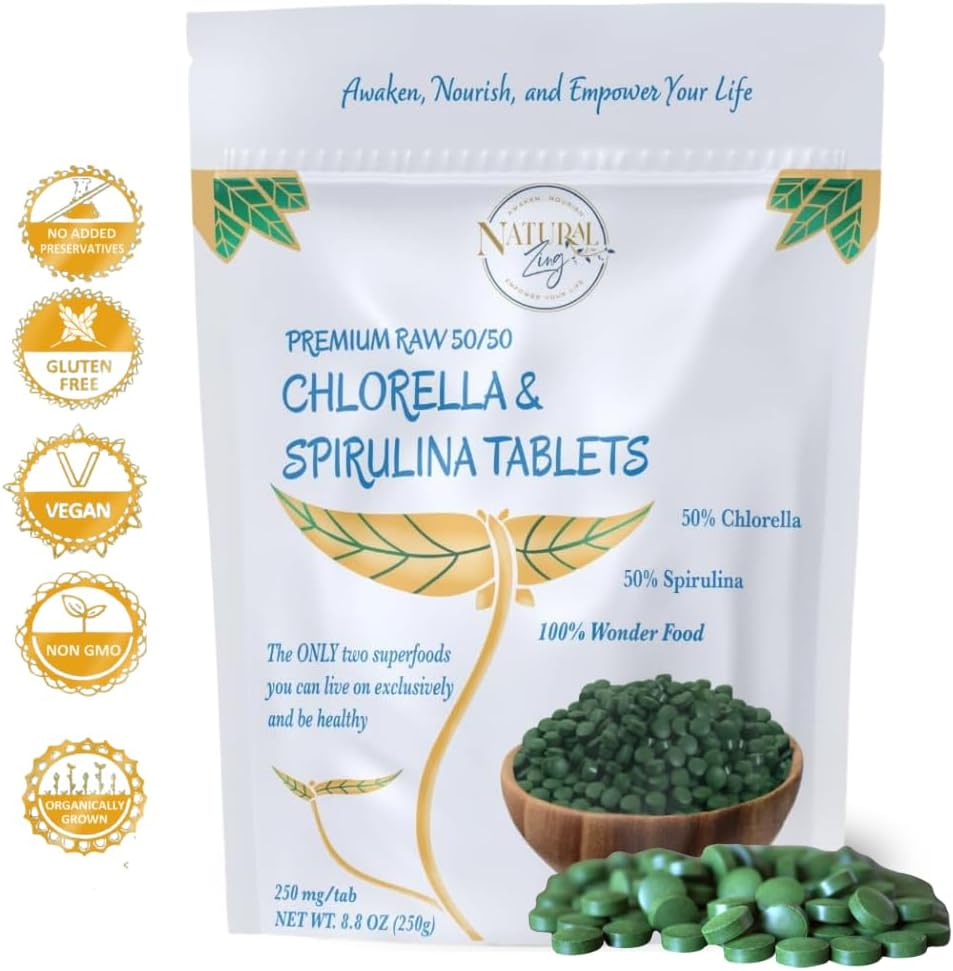Combination of Chlorella and Spirulina combined into one tablet for convinience. Both are organically grown, and packaged in the United States of America. The current Natural Zing ownership has worked with Chlorella and Spirulina for 20+ Years, with Leadership publishing a book about it.