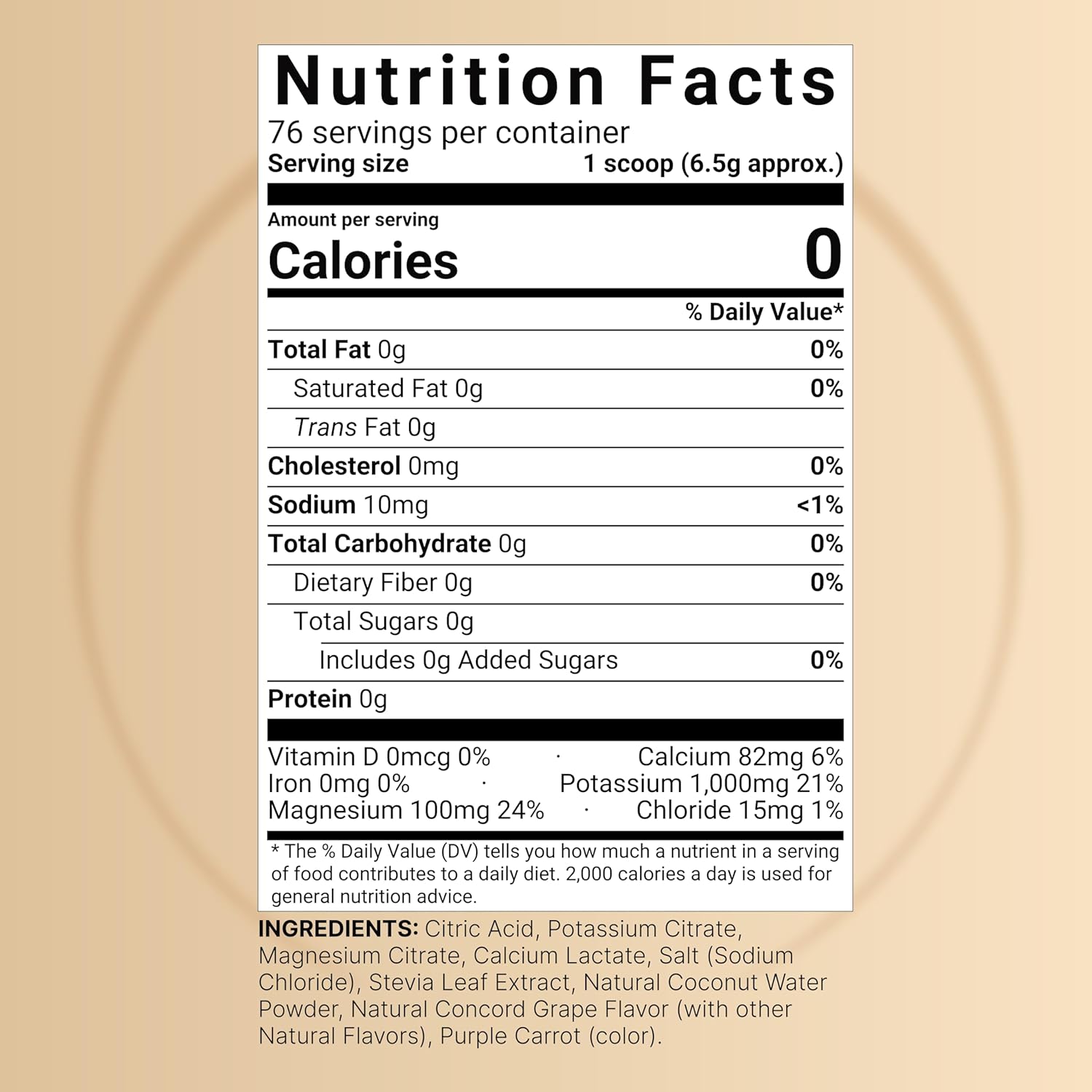 Each serving provides a high level of 1,000mg potassium, as well as containing calcium, magnesium, and salt, then combined with natural concord grape and coconut water for max benefits.