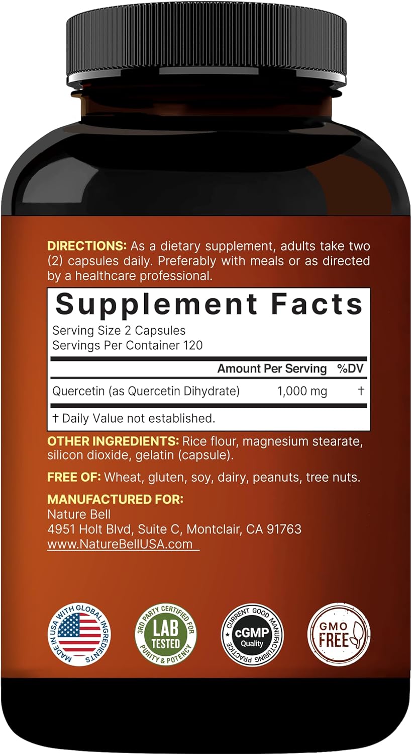 Authentic non-GMO quercetin powder capsuled supplements. Contains pure ingredients free of soy, dairy, gluten, preservatives, wheat, and tree nuts. Product is produced in California and 3rd party lab tested for safety and potency