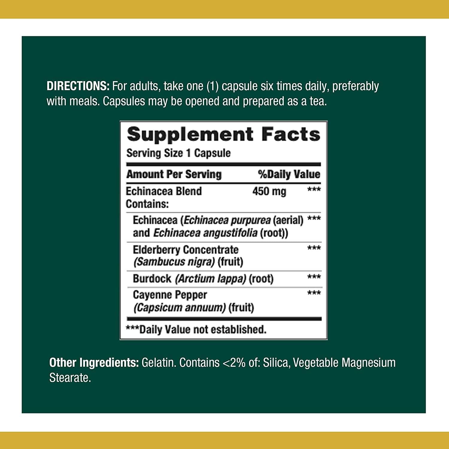 QUALITY, PURITY, POTENCY: Nature’s Bounty is committed to safety and purity in all our supplements. Our Echinacea Complex Capsules are non-GMO and sugar- and gluten-free