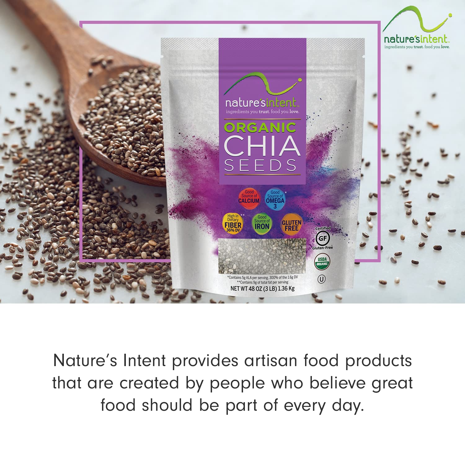 Ingredients You Trust: Our Chia Seeds are vegan, dairy, egg, fish, peanut, shellfish, soy, tree nut, GMO, gluten, grain, and wheat free. It’s USDA Organic certified and contains no added sugars, antibiotics, artificial ingredients, palm oil, or sugar alcohols. Nature’s Intent brings a little good to the world and we do it as honestly as we can. That’s why we source the best ingredients we can find, and why we’re always looking for ways to do better- for you. Packed in the USA.