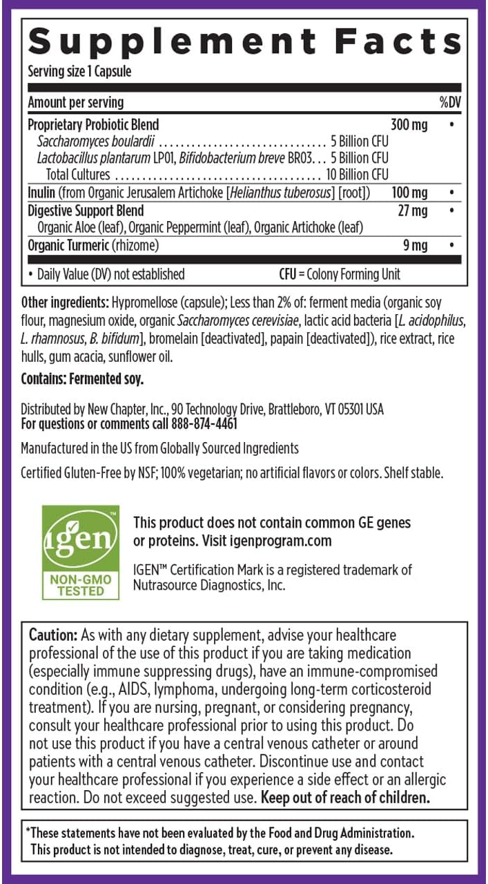 It’s time to rethink probiotics. Let’s be done pretending that “more” equals “better”! New Chapter’s All-Flora Probiotic is an advanced formula that harnesses the power of clinical-strength probiotics that go through rigorous testing (including DNA testing) to confirm you’re getting the exact, researched microflora for the benefits you want. No laundry list of strains, no megabillions needed! Delivers everything you need to nourish inner wellness: prebiotic fiber as fuel for good bacteria, 10 billion CFU clinical-strength live probiotics for digestive health and GI support, and beneficial postbiotic compounds.* Trust your gut! *These statements have not been evaluated by the Food and Drug Administration. This product is not intended to diagnose, treat, cure, or prevent any disease.