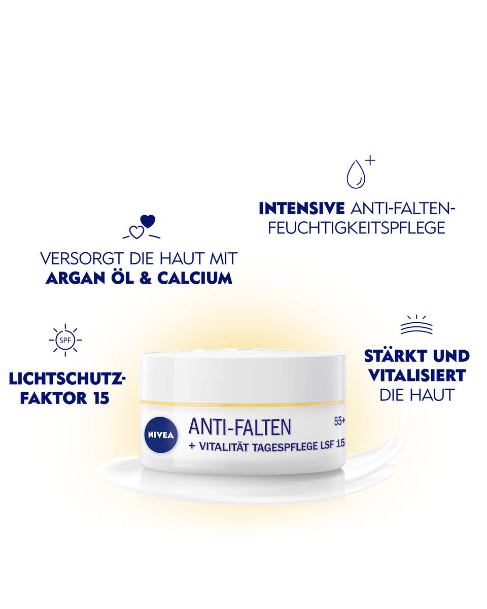 NIVEA Anti-Wrinkle + Revitalizing 55+ Day Cream is a rich, carefully formulated facial moisturizer designed specifically for mature skin. This 50 ml cream supports mature skin’s natural needs, delivering deep nourishment, improved elasticity, and visible smoothing of fine lines and wrinkles. Infused with argan oil and calcium, the formula works from within to boost the skin’s resilience, strengthen its barrier, and restore vitality and radiance. With consistent use, this day cream helps mature skin look firmer and more supple — making it ideal for skin that has lost firmness, glow, or elasticity. The texture is rich yet absorbs well, leaving skin feeling soft, smooth, and comfortable without greasiness. It’s suitable for daily use on face, neck, and décolleté (avoiding delicate eye areas). Whether your skin feels dry, dull, or lacking vitality, this cream helps revitalize and rejuvenate mature complexions. From the first application, skin feels hydrated and smoother — and over time, the appearance of fine lines is diminished and overall skin tone looks more even and youthful. This cream is part of a complete skincare ritual for mature skin — pair it with a night cream for best results.
