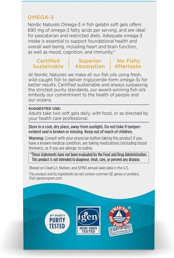 PERFECT FOR THOSE NEW TO FISH OIL – Nordic Naturals Omega-3 provides a generous serving of omega-3s in fish gelatin soft gels, and meets the daily recommended dose suggested by the American Heart Association to support a healthy heart.
