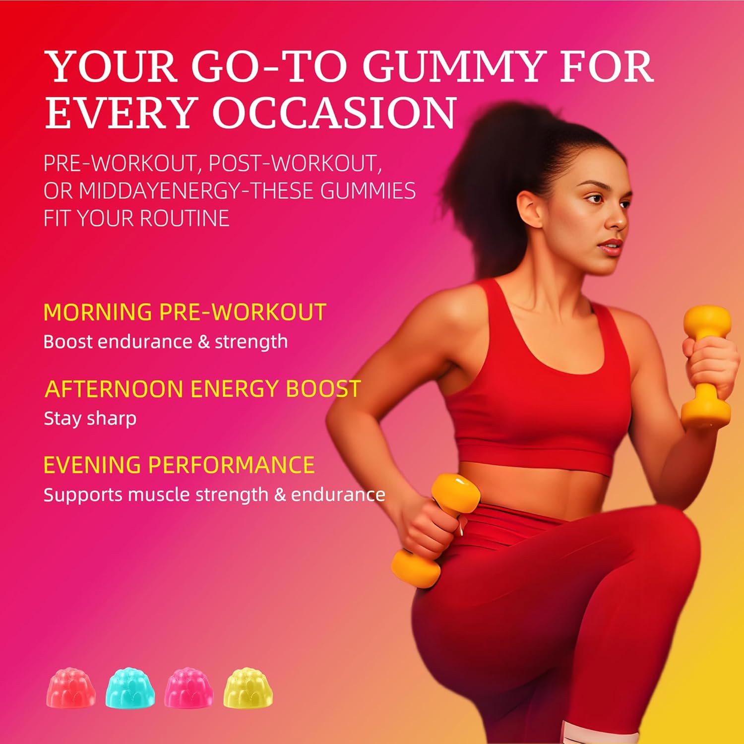 [ Key Benefits]: Our Creatine monohydrate gummies are an easy way to consume, 4 gummies per serving, you can take it at any time, any place. It improved muscle strength, muscle recovery, improve endurance and energy boost. Suitable for a variety of users, and enjoyable taste.