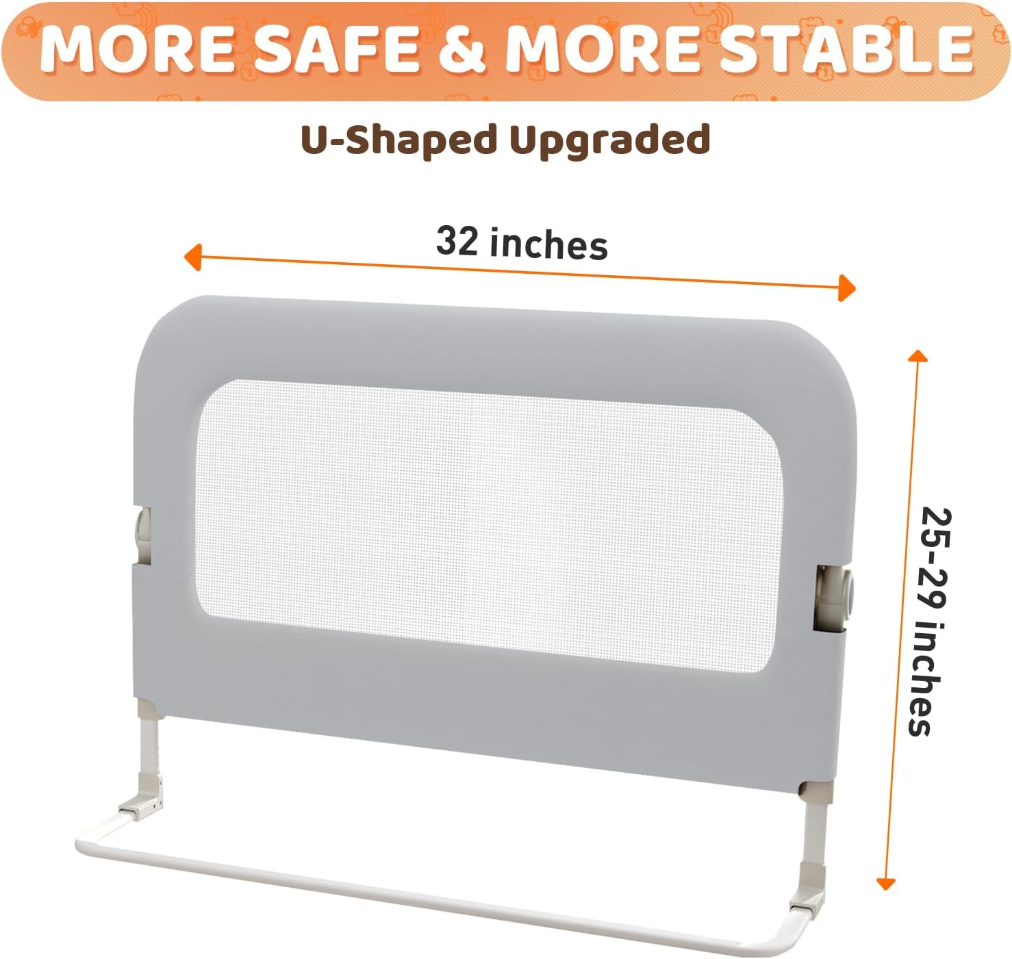 【REINFORCED U-SHAPED KICKSTAND】- The U-shaped kickstand under the mattress offers a wide, stable base that doesn’t slip. Bed safety rails for children easy to install under the mattress without tools or bed changes. The reinforced straps keep it more secure, ensuring a safe sleep for your baby.