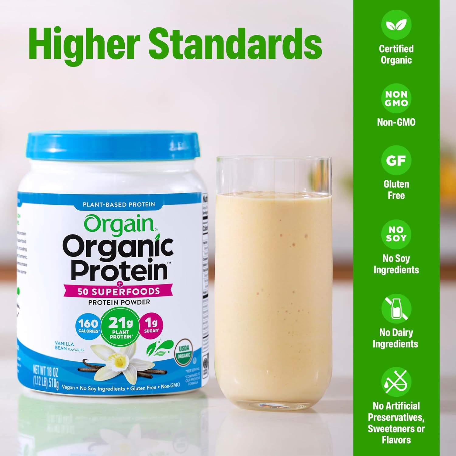 WHAT TO EXPECT: Includes 1 (1.12 Lb) (10 Servings) ready to mix Orgain Organic Protein + 50 Superfoods Vanilla Bean Protein Powder.