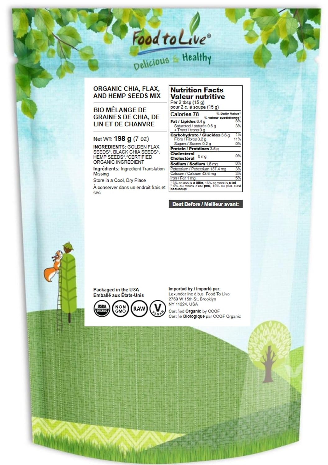 Flax, Hemp, and Chia Seeds Blend by Food to Live is Organic, trans-fat and sugar-free. It is incredibly wealthy with Dietary Fiber, Protein, and Antioxidants.This fiber-rich Seed Blend is loaded with Omega Fatty Acids. It is 100% Raw, Non-GMO and does not contain any additives.Food to Live’s Organic Seed Blend can be eaten raw; furthermore it is suitable for various diets, including Vegan, Vegetarian, and Paleo, and Keto.Add Flax, Hemp, and Chia Seed Mix to smoothies, hot and cold cereals, yogurts, salads, puddings, parfaits, various baked goodies, raw desserts (energy balls), and fruits bowls.It is a great, wholesome topping for avocado toasts, all kinds of sandwiches, homemade dips, and hummus.