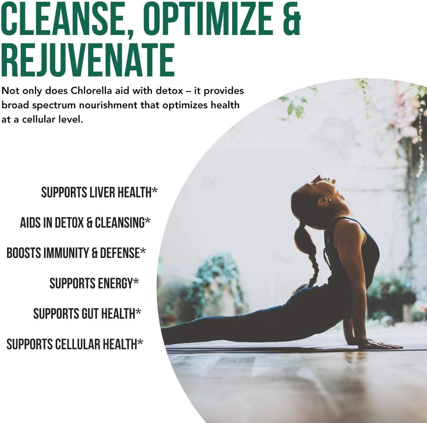 Promotes Total Body Health at the Cellular Level & Detoxification: Extensive studies have shown that Chlorella can support brain health, cardiovascular health, blood & cell health, skin health & appearance, healthy immune functions, and alkalization & detoxification of the body. It also restores and optimizes cellular health by neutralizing oxidative stress and inflammation.
