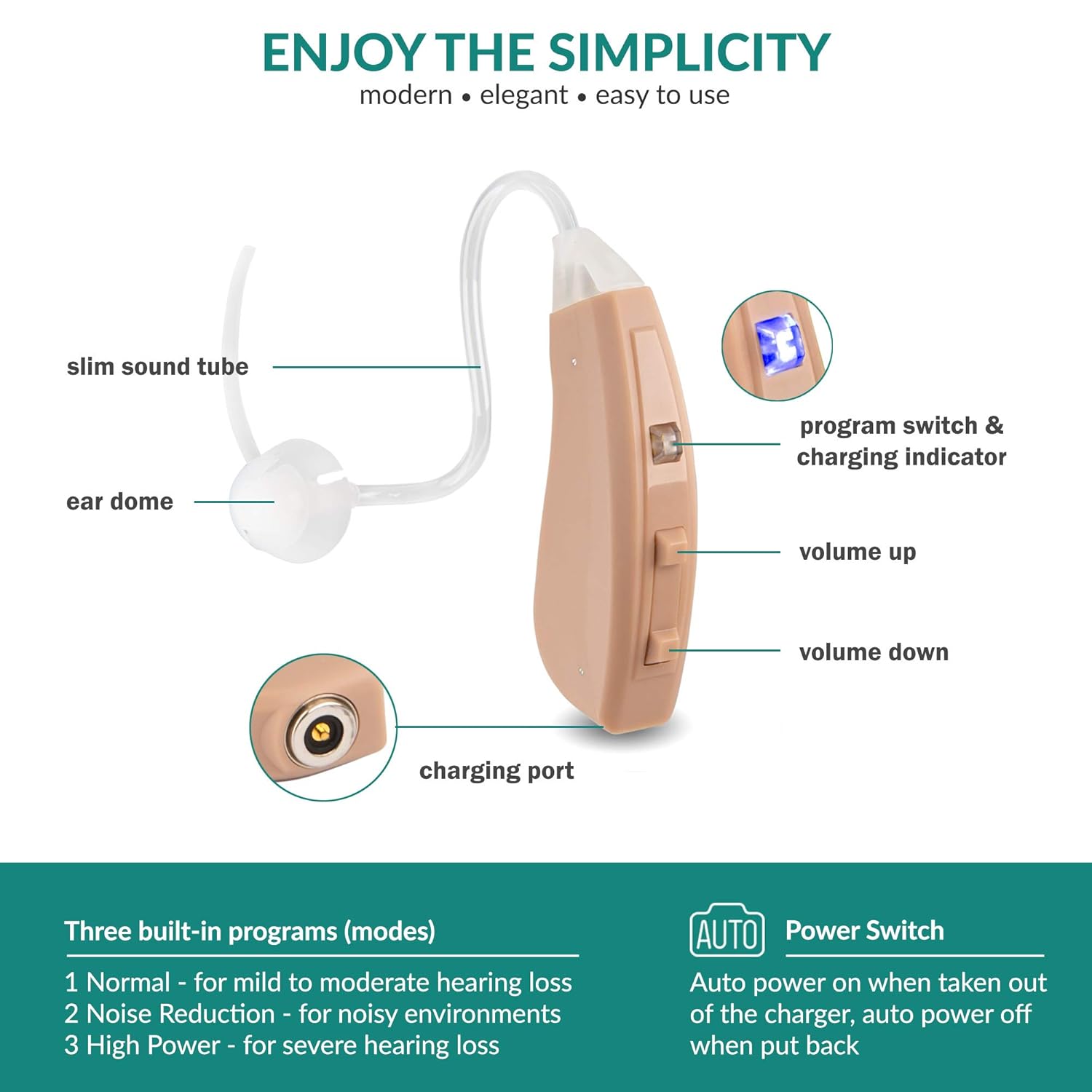 SUPERIOR SOUND QUALITY – With 6 WDRC compression channels and 12 frequency bands, this device provides the best natural sound clarity.