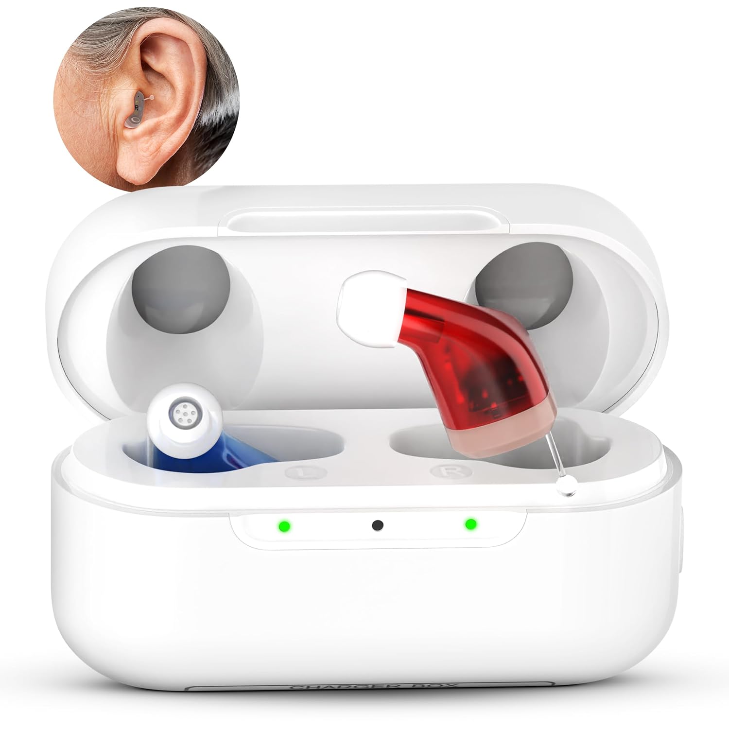 Rechargeable Convenience with USB Charging Case – The included charging case provides up to three full charges, ensuring the otc hearing aid remains powered throughout the day without frequent battery replacements.