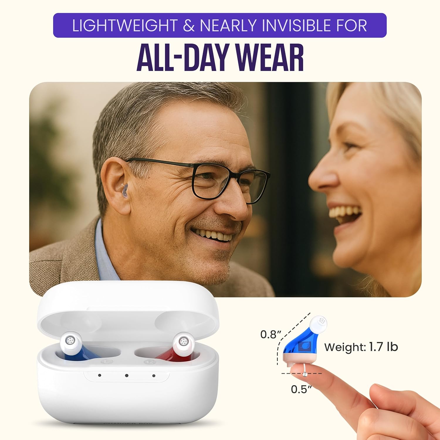 Lightweight & Discreet for All-Day Comfort – Designed for a secure, barely-there fit, these hearing aids for men & women are compact, lightweight, and comfortable, making them easy to wear for extended periods.