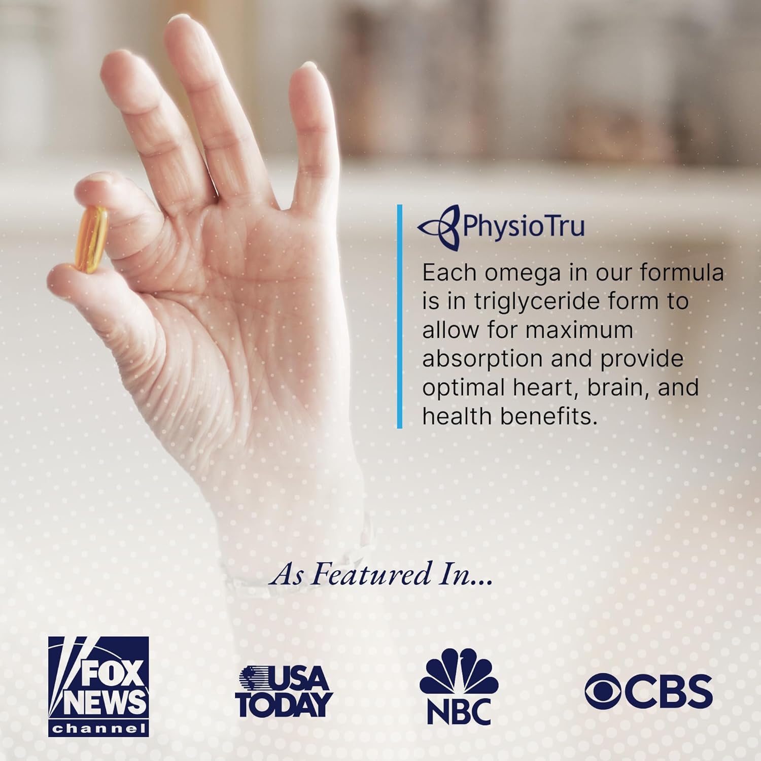 The Ultimate Supplement for Omega-3 Fatty Acids: Boost your essential fatty acids intake with Physio Omega, a formulation designed to support your overall health and well-being. Our advanced omega 3 fish oil blend features all three omega-3 fatty acids—EPA, DHA, and DPA. Crafted with an ultra-pure formula, each easy-to-swallow softgel is non-GMO, gluten-free, soy-free, and loaded with essential nutrients.