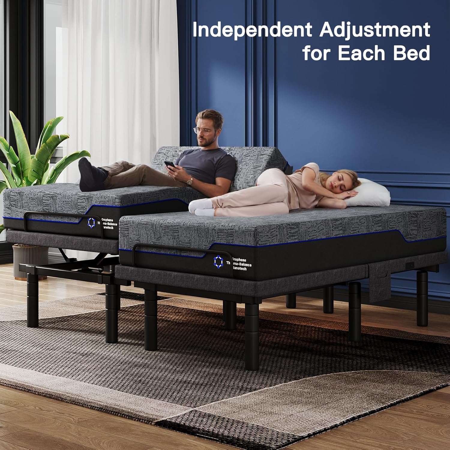 adjustable bed base electric bed frame split king queen Split King full size ergonomic bed lift head foot zero gravity anti-snore massage remote usb led lights memory foam mattress adjustable height tool free assembly quiet motor heavy duty bed frame sleep support recovery relaxation