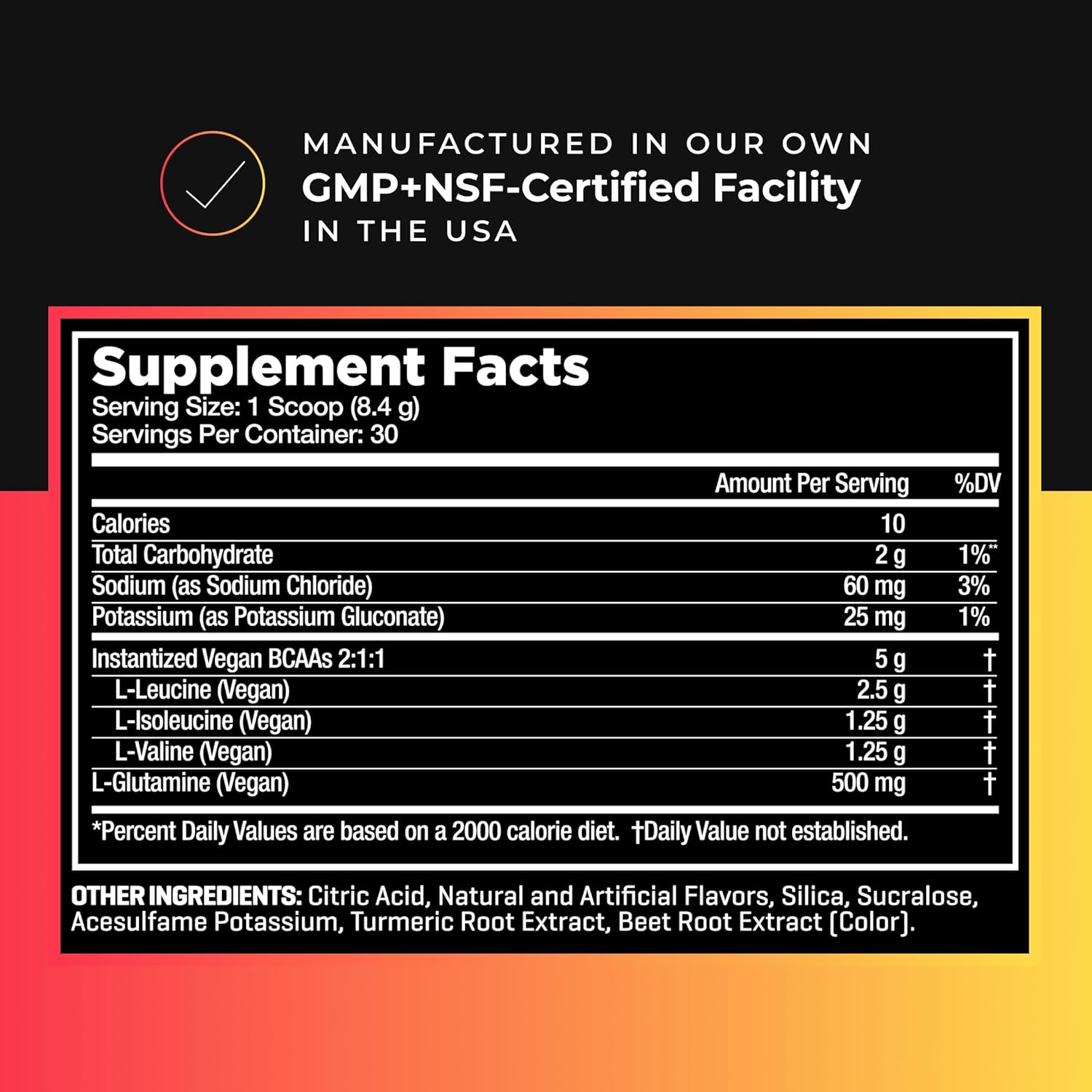 Accelerated Recovery: Includes 500mg of L-Glutamine (Vegan) to assist with post-workout recovery and muscle support