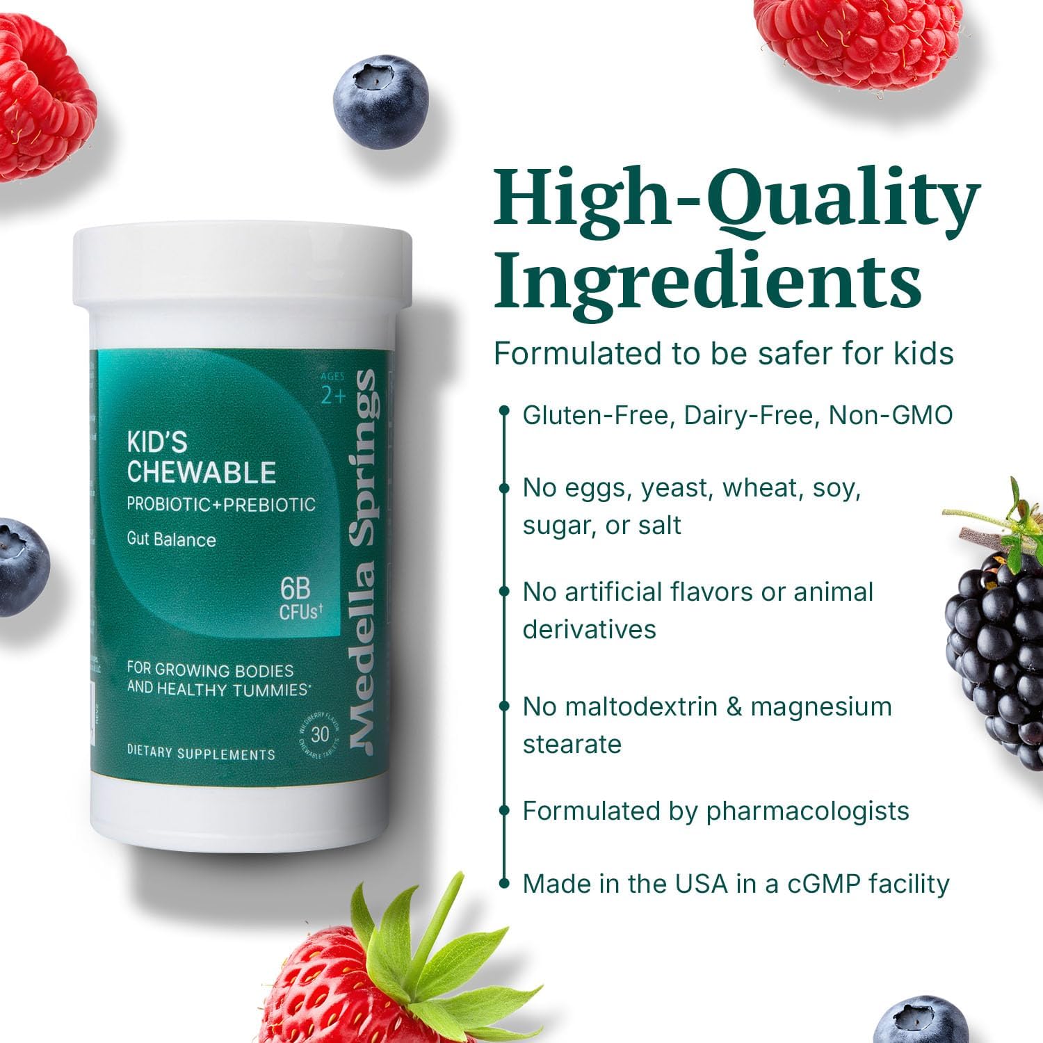 HIGH-QUALITY SUPPLEMENT – These kids probiotic chewables are made with high-quality natural ingredients. It is non-GMO and has no dairy, gluten, wheat, soy, salt, sugar, maltodextrin, animal derivatives, eggs, or artificial flavors.