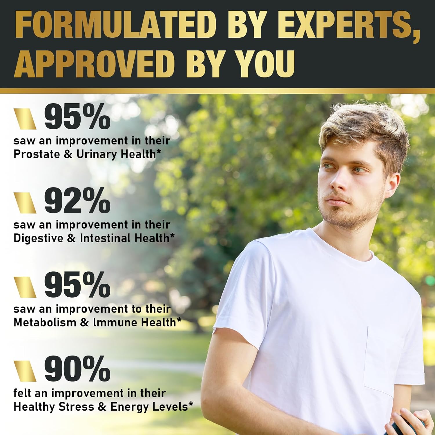 Powerful Probiotic Digestive & Gut Support: Presenting our cutting-edge probiotics for men formula to the unique mens health needs. Packed with a potent blend of 500 billion cfus, 12 strains probiotics and turmeric, cranberry, goji, is a powerhouse of holistic health support in 2 daily capsules. Provides digestive & gut support for up to 30 days. Say goodbye to digestive discomfort and more, promote optimal digestive, gut, immune & bloating, prostate & urinary tract health, nutrient absorption