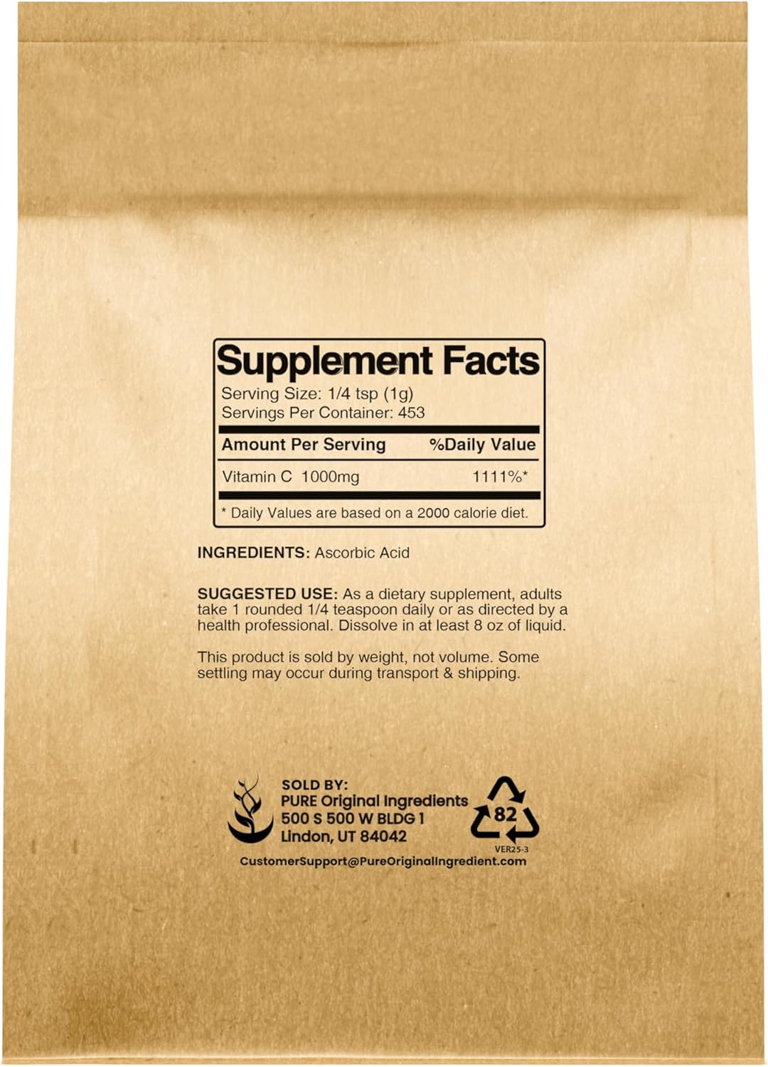 Pure Original Ingredients Vitamin C Powder is made from a single ingredient, providing a pure undiluted supplement