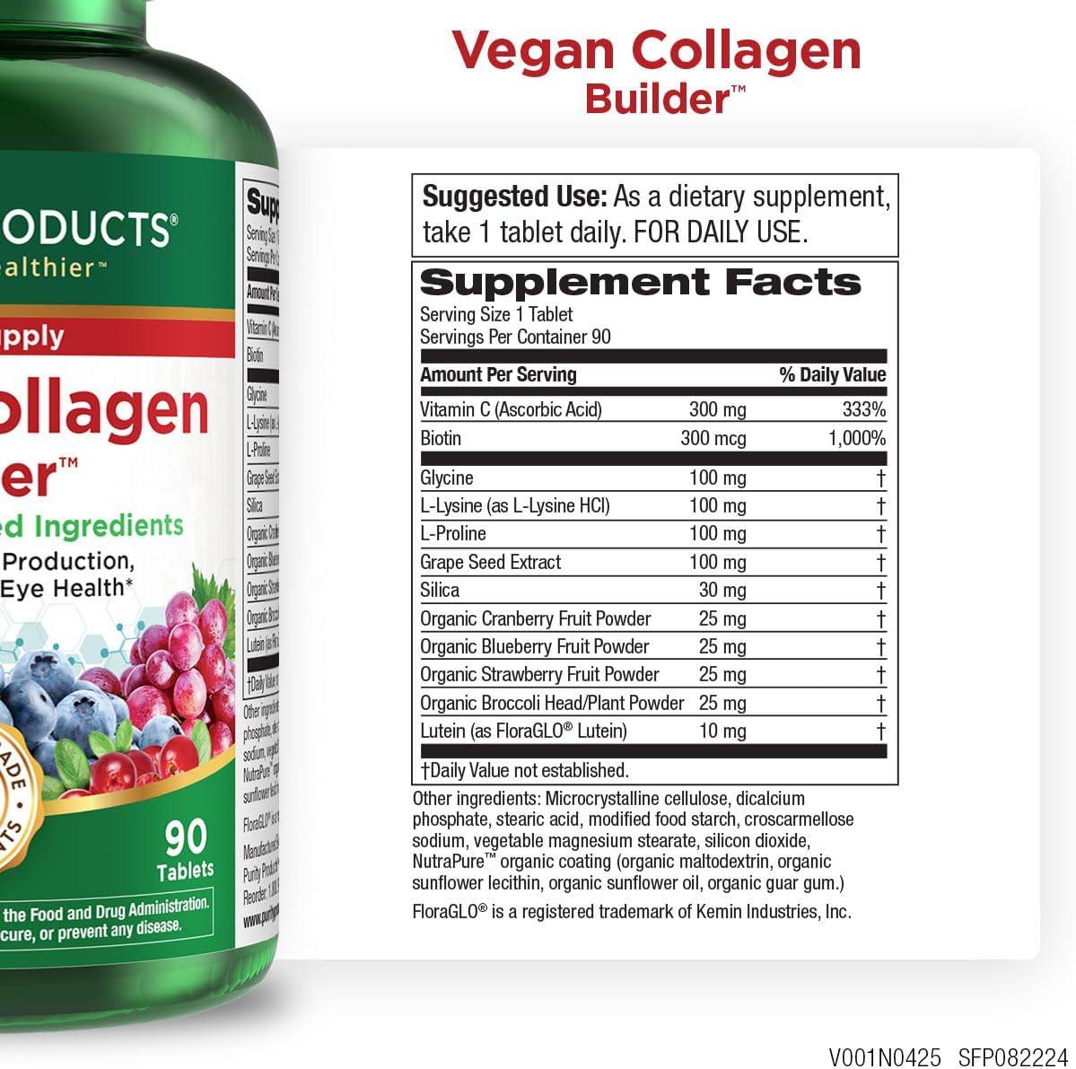 Welcome to the answer: Vegan Collagen Builder from Purity Products! This innovative blend of nutrients is based on the science of how your body produces collagen—the essential structural support protein for connective tissues in the skin, eyes, and throughout the body.* And it does it in a convenient one-a-day tablet — no need to mix up messy powders or take multiple pills!