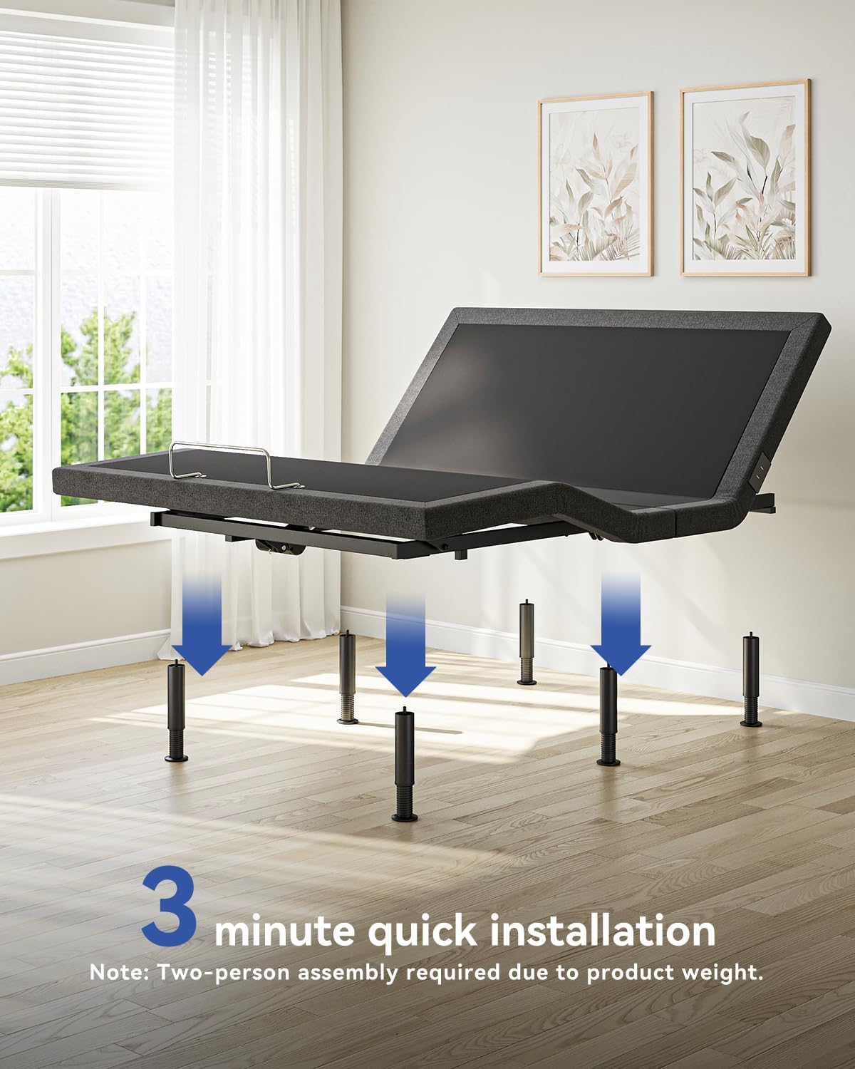 【Sturdy & Quiet】Kaipuyiree Adjustable Bed Frame with 900LBS Max Weight CapacityCrafted from thickened steel, the kaipuyiree adjustable bed frame boasts a maximum weight capacity of 900LBS—1.5 times that of standard bed frames. The ultra-quiet motor adjusts the bed frame angle smoothly without waking your sleeping partner. Rust-resistant hardware ensures long-term durability, making it a safe and durable high-quality home furniture piece for your family.