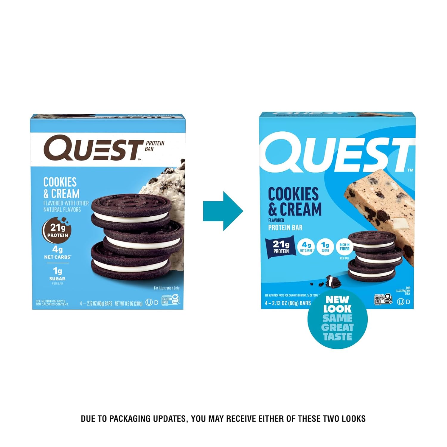 AT HOME OR ON-THE-GO. Quest Cookies & Cream Protein Bars with 21g of grab & go protein are just right for your morning commute, as a tasty treat at your desk, or a delicious way to refuel after a workout.*