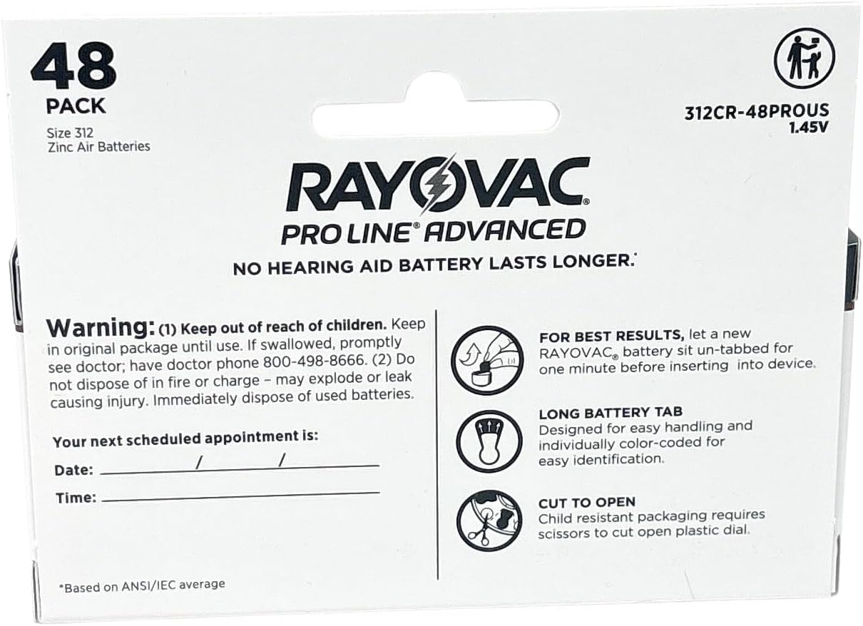 Never miss a moment with the world’s longest lasting hearing aid battery – now with child-resistant packaging! Rayovac Proline includes Rayovac’s newest “Active Core Technology,” providing unparalleled power on demand, longer lasting performance and increased durability. No battery lasts longer! Today’s hearing aids require the best. Rayovac Proline delivers the best in any situation, from mountain climbing to spending time with your family. Take advantage of advanced, high-drain hearing aid features like automatic environment sensing or ear-to-ear directionality without having to constantly replace your batteries.