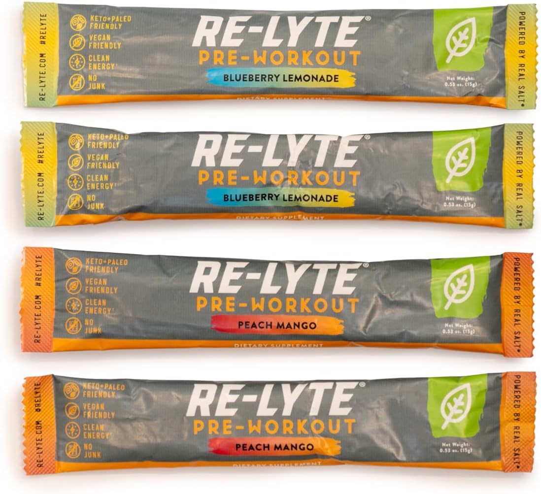 SAMPLE – Kickstart your training with the Redmond Re-Lyte Pre-Workout Sample Pack. Built for lifters, runners, early-morning grinders, and anyone who wants clean energy without the junk. This on-the-go sample pack makes it easy to find your favorite flavor before committing to a full jar. Each Sample Pack includes four stick packs, two of each refreshing flavor: Blueberry Lemonade and Peach Mango.